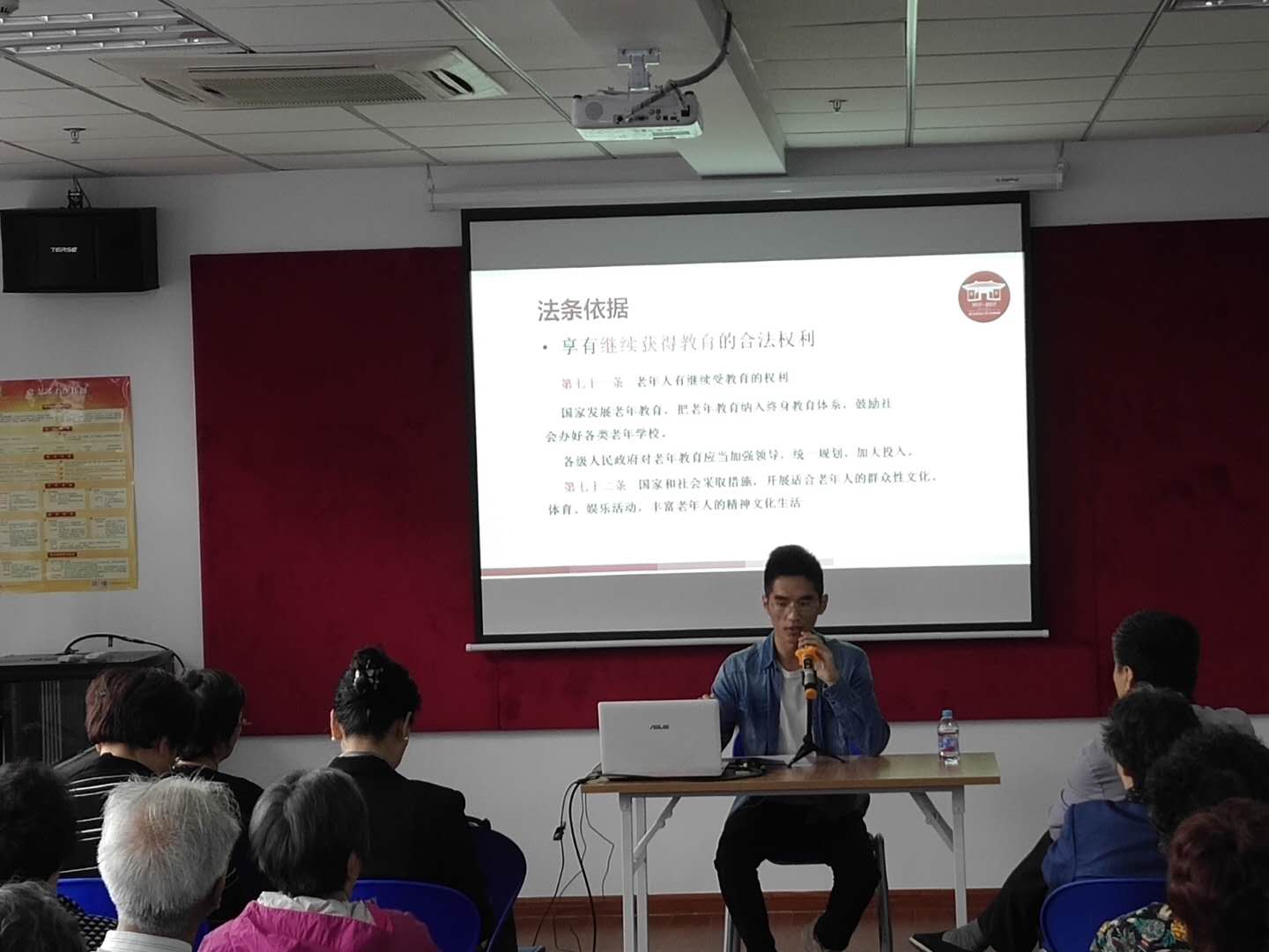 为加强社区老年人的安全教育,有效提高老年人自身的安全防范意识和自我保护能力,2019年5月15日上午,由财大法学院普法进社区大学生团队联合殷行路1628弄社区的“老年人权益保护”普法讲座在老年人活动中心举行。这次活动不仅为社区居民的生活增添了不少知识和乐趣,也为社区居民们学法、懂法、用法起到了积极的推动作用。