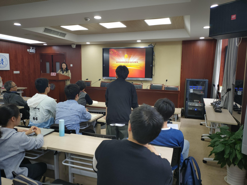 李涛老师开场以“红歌”的定义为引子,激发了大家对红色歌曲的兴趣,师生们热烈讨论并表达了自己的认识和体会。同时,李涛老师介绍了一些深入人心的红歌作品,并为大家作示范演唱,声情并茂、余音袅袅,听者回味无穷。每讲到动情处,李涛老师便不由自主地哼唱起来,通过现场演唱的方式展现歌曲的不同风格和特质,传达音乐背后蕴含的丰富情感。歌声贯穿于党课始终,大家的掌声也不绝于耳。