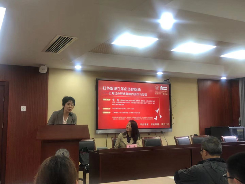 2021年4月27日,beplay全站 党史学习教育“党课100”第三讲在法学院116会议室举行。上海音乐学院音乐戏剧系李涛副教授以“红色旋律在革命圣地唱响——上海红色经典歌曲的创作与传唱”为主题,通过音乐给大家进行了一次爱国爱党的红色文化教育。此次党课由法学院党委书记杨乐主持。