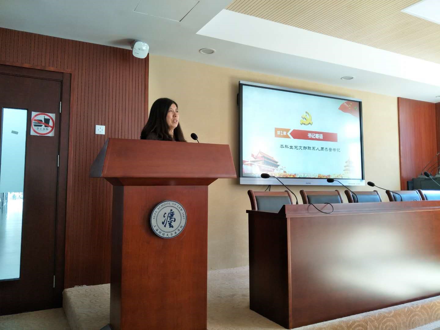 第一部分为“书记寄语”,在该部分本科生党支部联系人周杰普书记,为同学们分享了她在学生时代的入党经历,谈及到如何做一名合格党员,她提到做合格党员首先是成为一个人,一个善良的人,其次是做一个青年,一个有情怀的青年,最后是一个党员,一个有使命感的党员。关于十九大精神的学习,周杰普书记强调作为法学专业的学生,要深入学习十九大强调的全面依法治国的精神,从科学立法、严格执法、公正司法和全民守法的角度去思考依法治国的深刻内涵。最后,周杰普书记为同学们解读了中国特色社会主义法律体系的内涵,使同学们进一步理解了中国特色社会主义法律体系对于建设法治中国的重要意义。