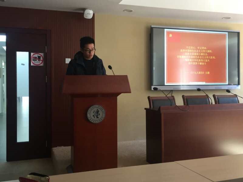 本次学习贯彻党的十九大精神的专题组织生活会由法学院本科生党支部张荣荣同学主持,法学院本科生党支部联系人周杰普书记、法学院辅导员付卓婧老师作为特邀嘉宾,本科生党支部全体党员参加。会议围绕“不忘初心,牢记使命”的主题,开展了三个部分的活动。