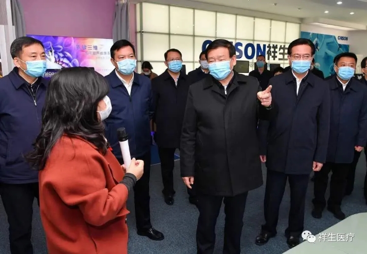 响应国家需要,祥生医疗公司近年来一直致力于科研创新,目前公司在超声人工智能、云平台技术方面取得丰硕成果。本次疫情中,公司及时响应抗疫前线各医院的反馈,继续加强科研攻关,争分夺秒开发了针对新冠肺炎的专用功能包,大大提高了医生诊断效率,并已整合到最新产品“SonoEye超声眼”中,可作为视诊器配备到抗击疫情的一线医院。娄书记高度赞扬了祥生医疗公司强烈的社会责任感,并对公司研发的新产品表示高度关注,希望公司不断推出创新产品,尽快应用到防疫工作中。