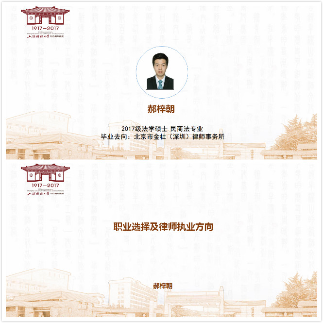 第四位嘉宾是郝梓朝学长。郝学长毕业后在金杜(深圳)律师事务所的争议解决部门工作,因此学长主要分享了职业选择及律师执业方向的心得体会。在分享中,学长给出了许多律所实习和留用的建议,例如抓住内推机会、重视英语能力等,并介绍了金杜等红圈所的招聘要求。同时学长也强调,对于毕业班同学来说论文撰写的重要性。此外,学长还分享了过去在最高院巡回法庭的实习经历以及在律所工作的感想,讲述了律师工作的压力。最后学长就同学们线上提出的问题一一回答,包括深圳律师行业与上海律师行业的对比、精品所工作强度、疫情对实习需求影响、其他职业选择等,让同学们对于律师行业有了更加清晰的了解。