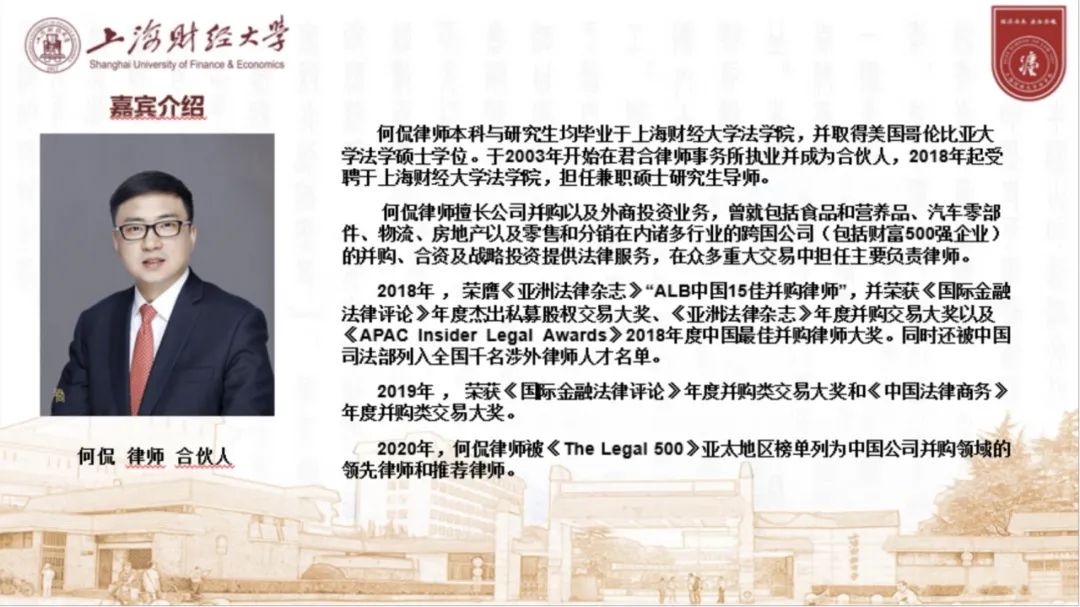 2020年4月18日晚,由beplay全站 主办的生涯“云”课堂经验分享会活动成功举办。本次分享会有幸邀请到了君合律师事务所的合伙人,同时也是上海财经大学知名校友——何侃律师作为本次活动的嘉宾。由于疫情原因,活动采取线上形式开展,但也吸引了200多位同学前来聆听,会议现场十分活跃。