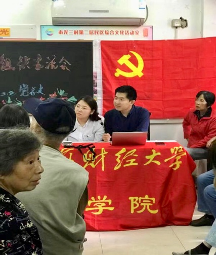 活动正式开始之前,小组成员首先在功能厅内墙壁挂上党旗,在讲台前放置法学院院旗,以表示学院对本次普法活动的重视。待场地联络人准备就绪以及失独老人全部到场后,本次普法活动正式开始。按照活动分工,陈文清同学负责讲解,王佳丽、宿潇丹同学负责拍照和事后的咨询服务。三位同学首先向在座的各位失独老人介绍各自自己基本情况以及本次普法活动的主题及相关内容和意义。之后便由陈文清同学主讲遗嘱与继承问题。主要讲解了遗嘱的形式,分为口头遗嘱、公证遗嘱、自书遗嘱、代书遗嘱、录音遗嘱五种形式,分别讲解了各自的订立方式及效力。另外提醒了在座老人要注意遗嘱无效的事由,以及遗嘱的变更和撤销两个方面。宣讲地第二部分内容为继承的方式,分为遗嘱继承、遗赠、遗赠抚养协议、法定继承。解说完相关的基本法律知识后,在座的老人很积极的提出了许多问题,宣讲同学也积极地为他们进行了解答。 本次活动在掌声中圆满结束。