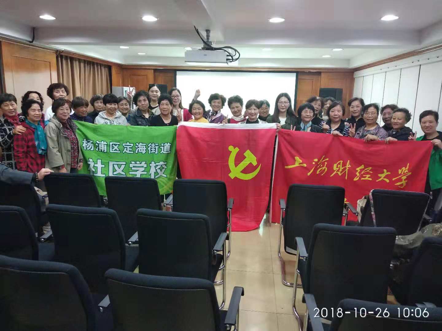 最后,小组成员与社区老人共同留影纪念。定海街道社区老年人学校的校长李婷对本次的普法活动表示了感谢,并且希望能够与财大法学院增进交流,加强后续的其他项目合作,此次普法活动中,宣讲同学热情耐心,社区居民积极参与,获得了良好的反响,取得了圆满成功。