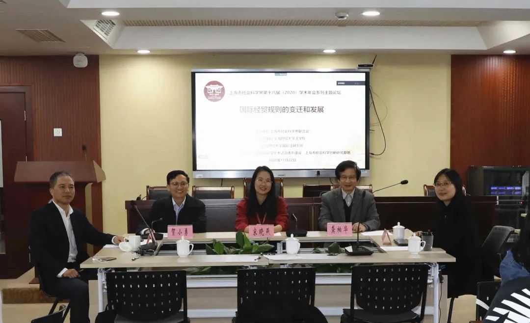 2020年11月22日下午,由上海市社会科学界联合会主办,由beplay全站 、上海财经大学国际法研究所、“国际经贸规则中国特色哲学社会科学学术话语体系建设”上海市社会科学创新研究基地联合承办的上海市社会科学界第十八届(2020)学术年会系列主题论坛“国际经贸规则的变迁和发展”研讨会成功举办,会议采取线上与线下相结合的方式举行。来自中国人民大学、中国政法大学、对外经贸大学、武汉大学、厦门大学、复旦大学、华东政法大学、上海对外经贸大学、上海财经大学等高校的专家学者参加了本次会议。