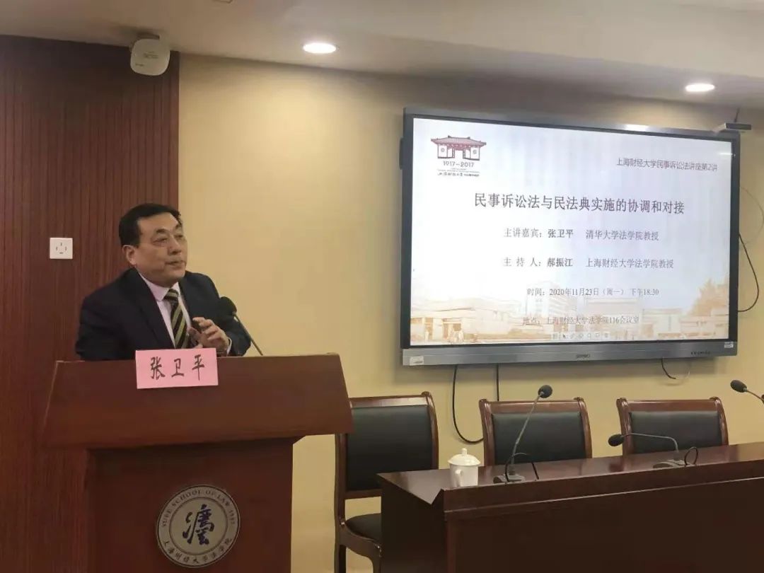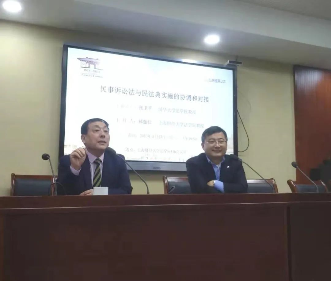 2020年11月23日晚,“上海财经大学民事诉讼法讲座”第2讲在法学院116会议室举行。中国民事诉讼法研究会会长、清华大学法学院张卫平教授以《民事诉讼法与民法典实施的协调和对接》为题,与法学院师生进行交流。讲座由我院郝振江教授主持,陈芳、何欢等老师参与。