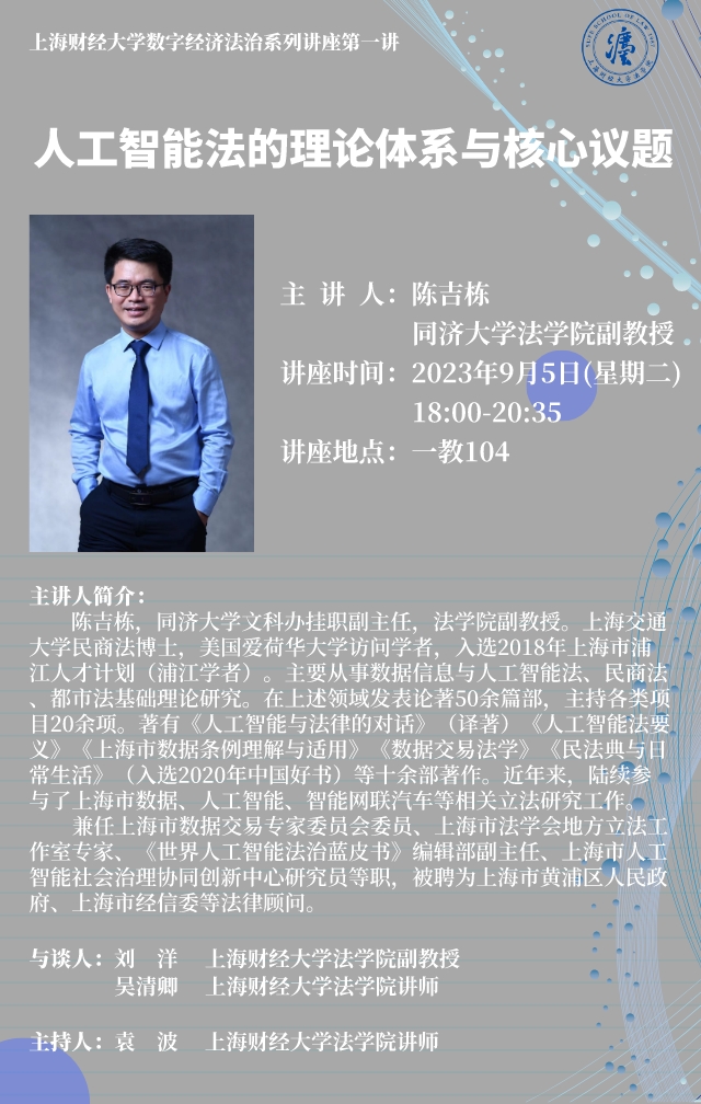 讲座预告 | 数字经济法治系列讲座第一讲:人工智能法的理论体系与核心议题