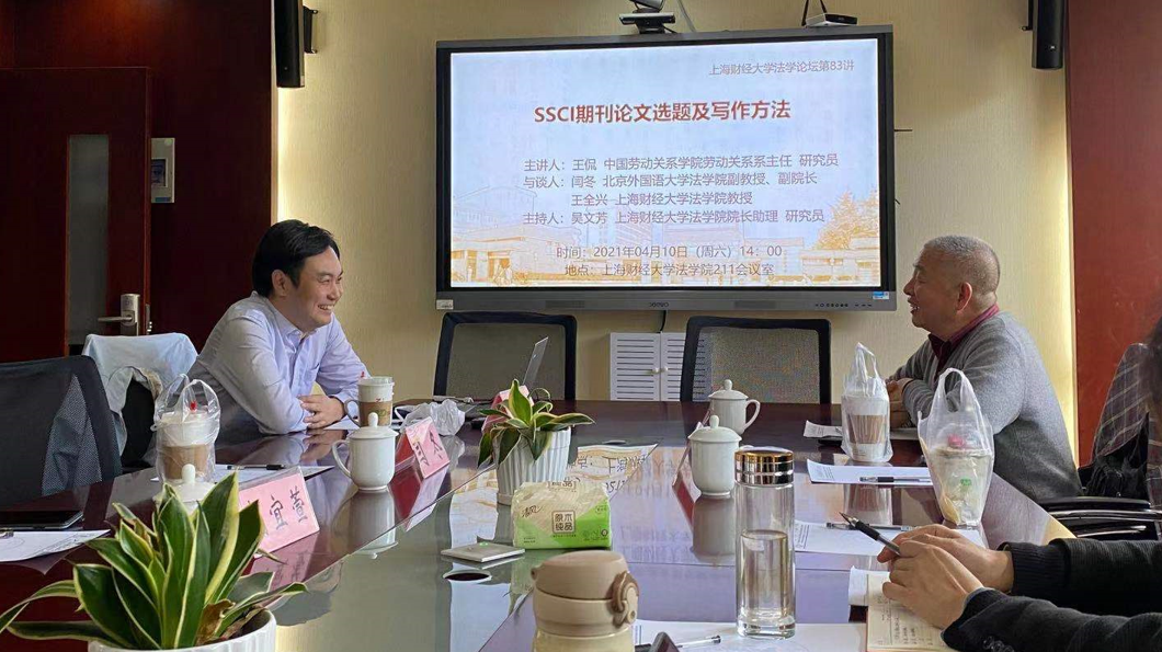 2021年4月10 日下午,中国劳动关系学院劳动关系系主任、工会与劳动关系研究院研究员王侃在法学院211为大家带来主题为“SSCI期刊论文选题及写作方法”的讲座。beplay全站 院长助理、研究员吴文芳老师担任主持人,北京外国语大学法学院副教授、副院长闫冬老师和beplay全站 王全兴教授担任与谈人。