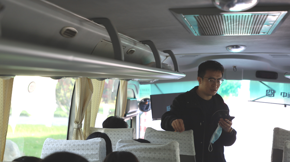 在前往宝山烈士陵园的大巴车上,法学院研究生三支部书记于智超带领党员、团员共同高歌《国际歌》,“起来饥寒交迫的奴隶,起来全世界受苦的人,满腔的热血已经沸腾,要为真理而斗争,旧世界打个落花流水,奴隶们起来起来,不要说我们一无所有,我们要做天下的主人。”激昂澎湃的歌声穿越时空,仿佛带我们回到了那段峥嵘的岁月,直面革命先烈的宏伟抱负。