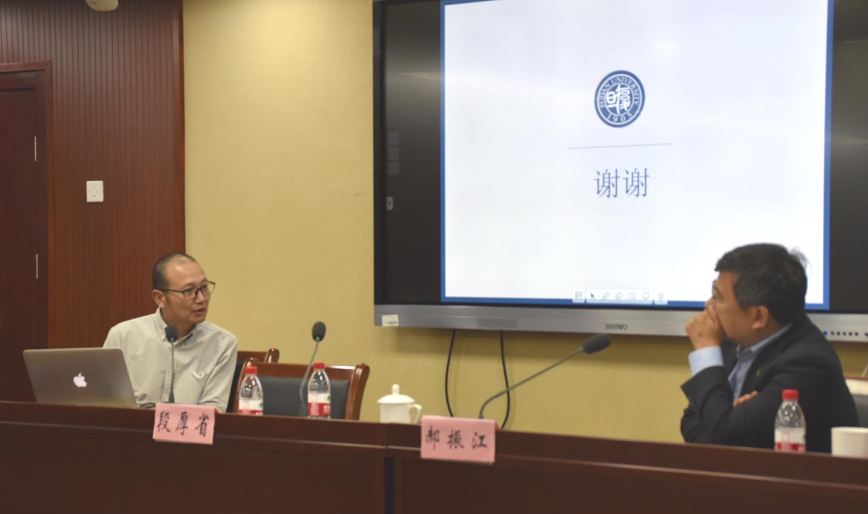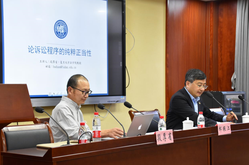 2021年5月8日晚,民事诉讼法讲座第4讲在法学院116会议室举行。复旦大学法学院段厚省教授以《论诉讼程序的纯粹正当性》为题,与我院师生进行了交流。讲座由我院郝振江教授主持。