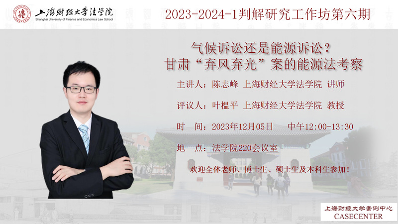 讲座预告 | 2023-2024-1判解研究工作坊第六期:气候诉讼还是能源诉讼?——甘肃“弃风弃光”案的能源法考察