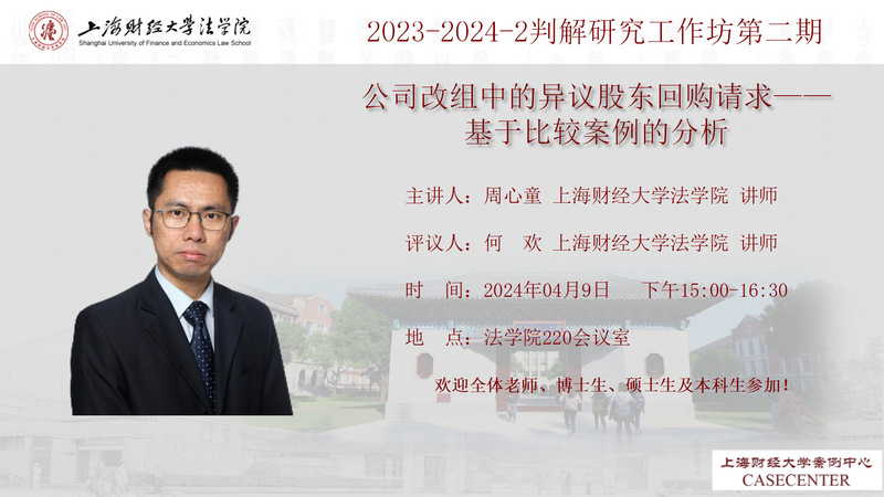讲座预告 | 2023-2024-2判解研究工作坊第2期:公司改组中的异议股东回购请求—基于比较案例的分析