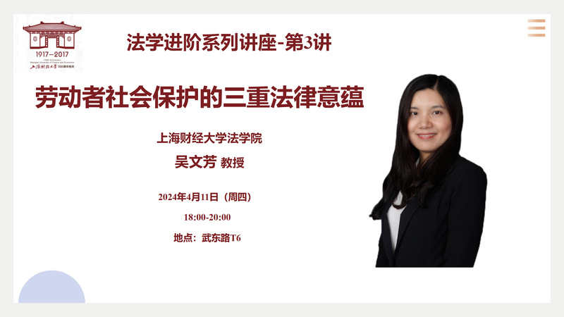 讲座预告 | 法学进阶系列讲座第3讲:劳动者社会保护的三重法律意蕴