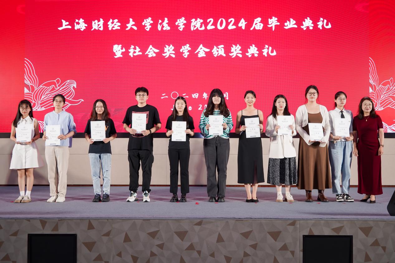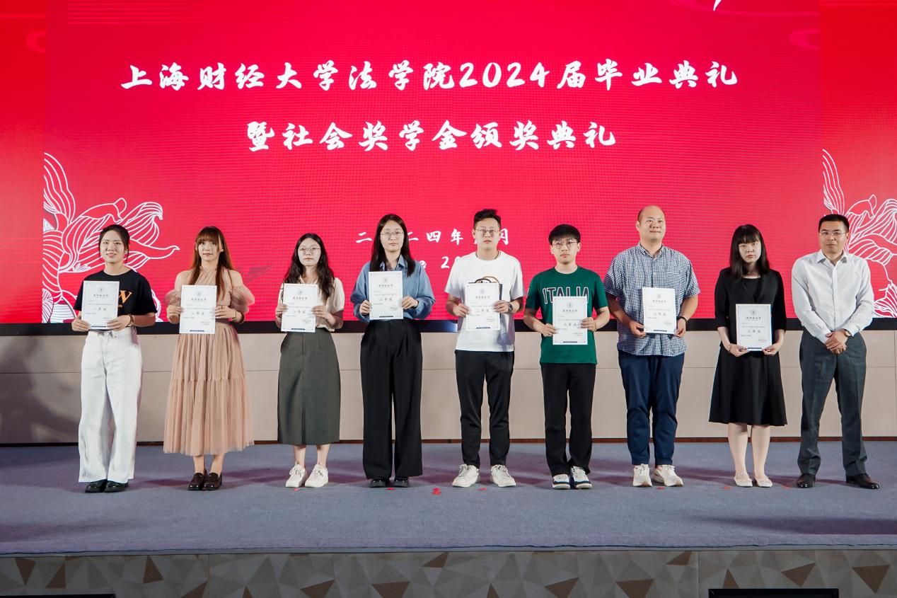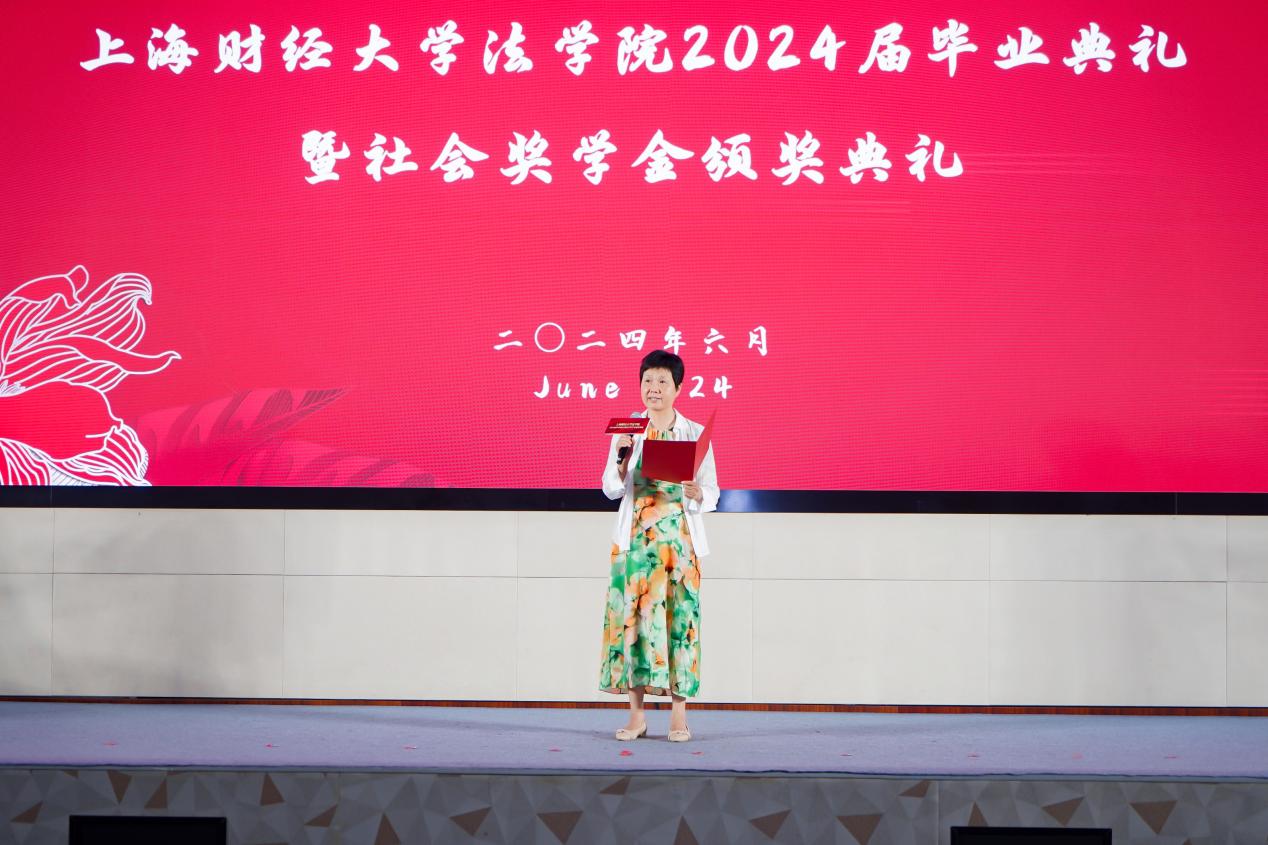 2024年6月23日下午,beplay全站 于科研实验中心多功能厅101隆重举办2024届毕业典礼暨社会奖学金颁奖典礼,以表彰法学院优秀学子,并为2024届全体毕业生送上诚挚的祝福。参加此次活动的社会奖助学金设奖单位嘉宾有:上海瀛东律师事务所监事会主任谢钍睿,上海金茂律师事务所合伙人谢洁瑾,北京观韬中茂(上海)律师事务所合伙人钱晔文,上海汉盛律师事务所管理合伙人殷豪,何爱琴律师事务所合伙人何爱娟,上海锦天城律师事务所执委会成员、高级合伙人缪蕾,2006级首届法律硕士校友庄建明。校合作发展处副处长、教育发展基金会副秘书长吴家瑞,法学院院长宋晓燕,法学院党委书记罗山鸿,法学院副院长朱晓喆,法学院副院长郝振江,法学院党委副书记齐宁,法学院教师代表,2024届毕业生和2024年社会奖学金获奖学生出席了此次典礼。社会奖学金颁奖典礼由法学院2024届国际法学博士毕业生尚雪睿主持。