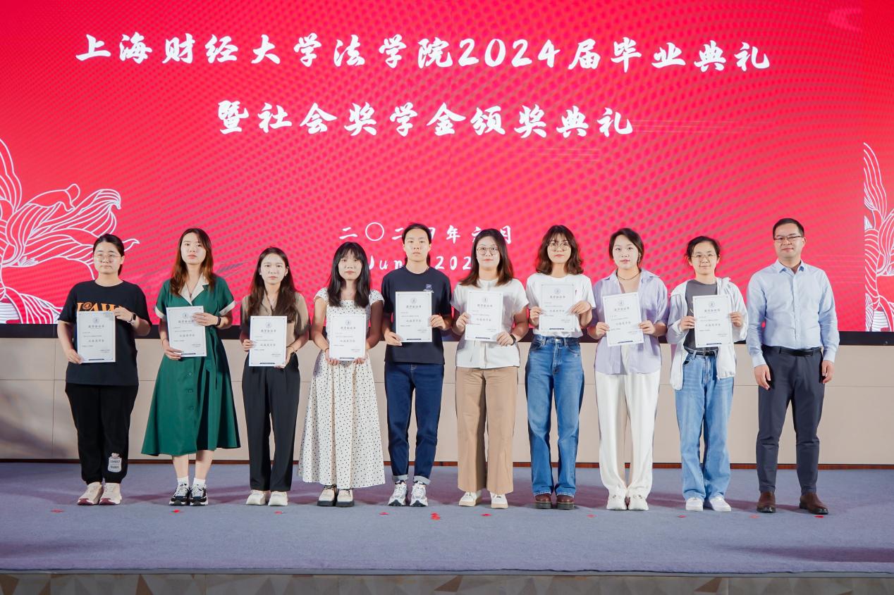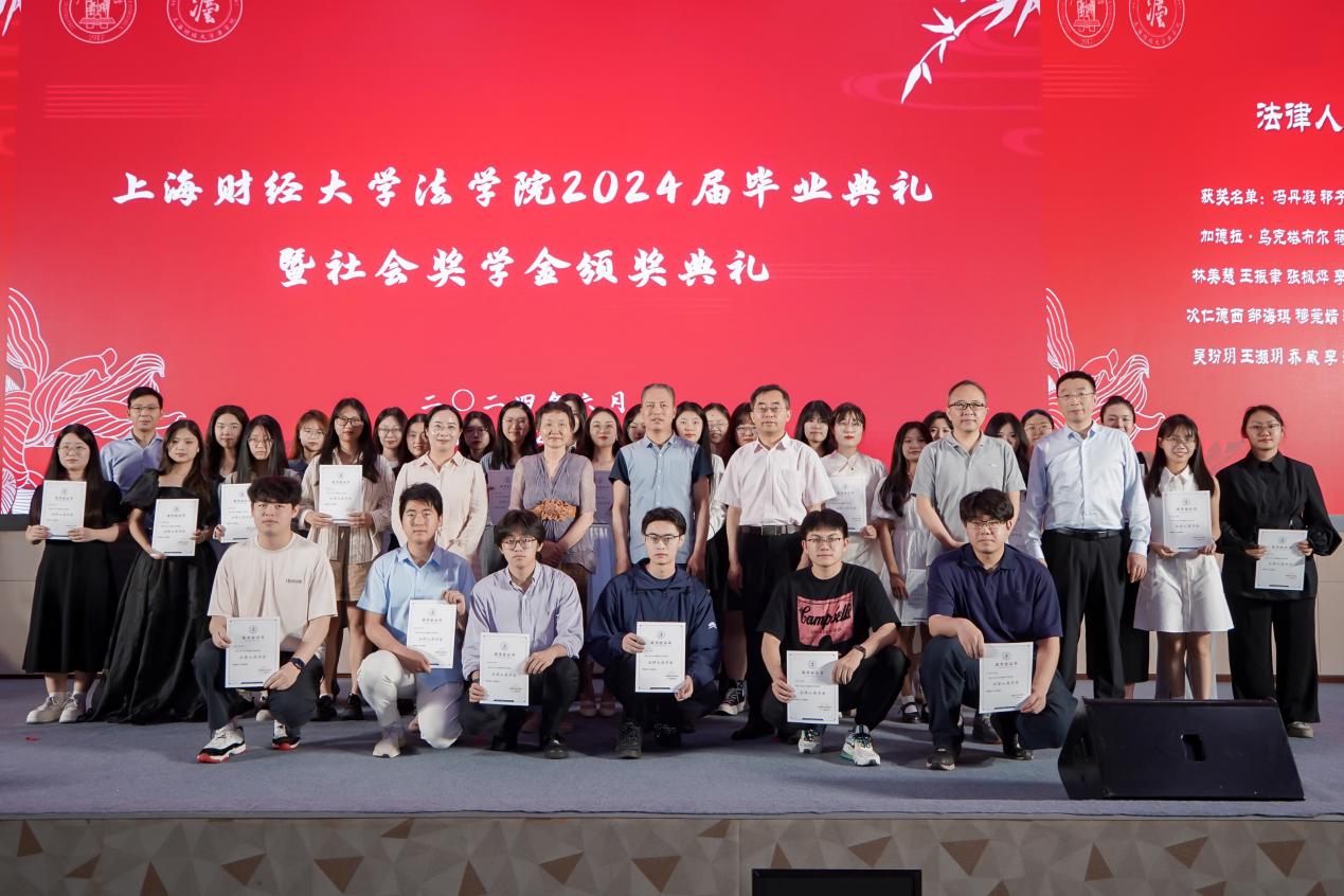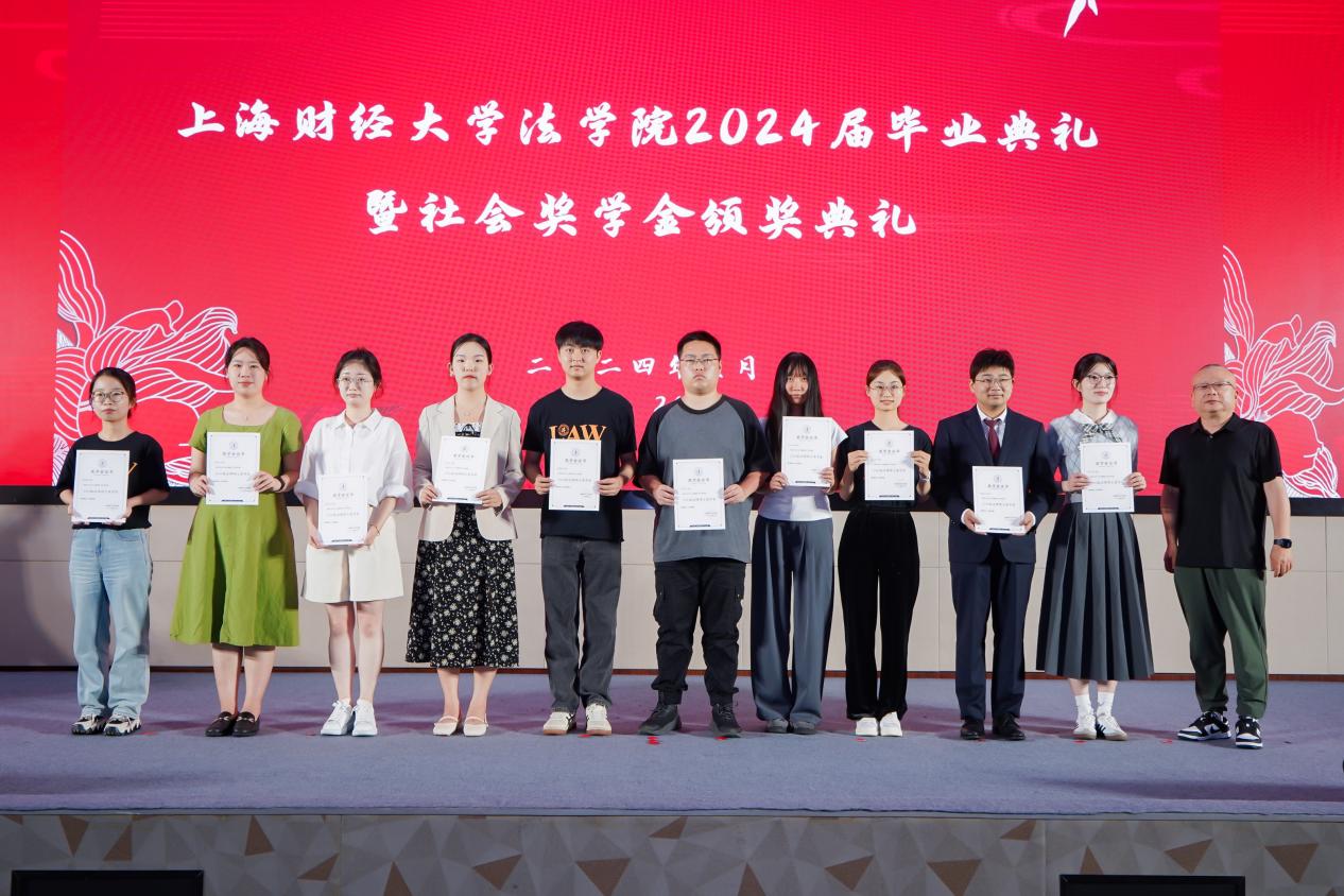 2024年6月23日下午,beplay全站 于科研实验中心多功能厅101隆重举办2024届毕业典礼暨社会奖学金颁奖典礼,以表彰法学院优秀学子,并为2024届全体毕业生送上诚挚的祝福。参加此次活动的社会奖助学金设奖单位嘉宾有:上海瀛东律师事务所监事会主任谢钍睿,上海金茂律师事务所合伙人谢洁瑾,北京观韬中茂(上海)律师事务所合伙人钱晔文,上海汉盛律师事务所管理合伙人殷豪,何爱琴律师事务所合伙人何爱娟,上海锦天城律师事务所执委会成员、高级合伙人缪蕾,2006级首届法律硕士校友庄建明。校合作发展处副处长、教育发展基金会副秘书长吴家瑞,法学院院长宋晓燕,法学院党委书记罗山鸿,法学院副院长朱晓喆,法学院副院长郝振江,法学院党委副书记齐宁,法学院教师代表,2024届毕业生和2024年社会奖学金获奖学生出席了此次典礼。社会奖学金颁奖典礼由法学院2024届国际法学博士毕业生尚雪睿主持。