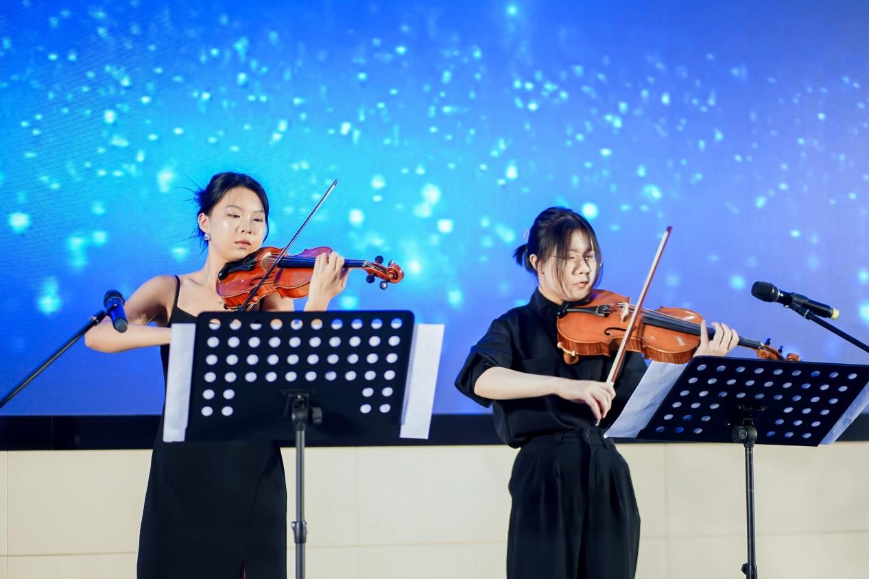 付婧瑶与王可同学与为大家带来弦乐二重奏《Passacaglia and Sarabande》。小提琴时而悠扬,时而高亢的弦乐之声,为在场同学带来了一场艺术之美的盛宴。