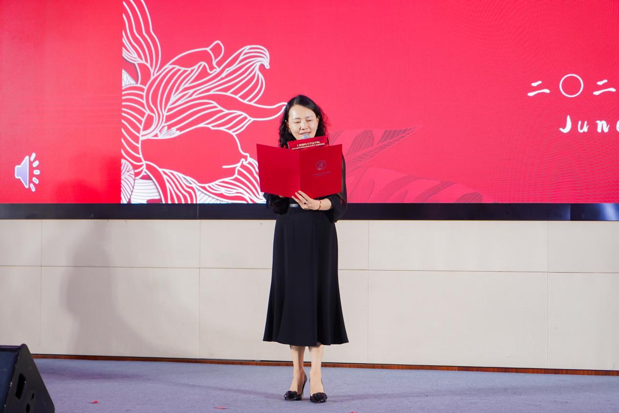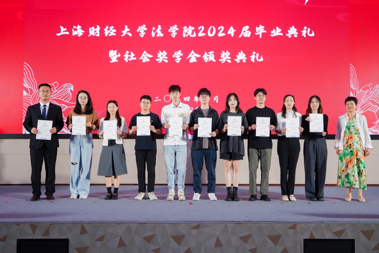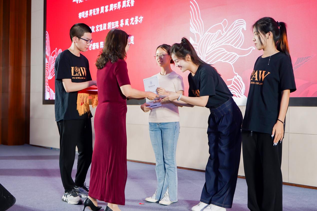 奖学金表彰最后一项,由宋晓燕老师为院长奖学金获奖代表颁发证书。该奖学金用于奖励每年法学院获得优秀毕业论文的毕业生。