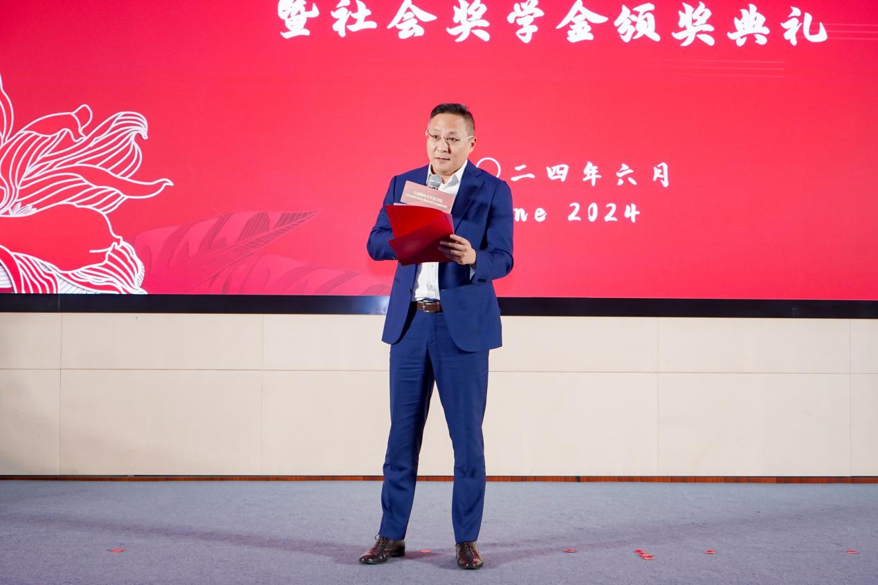 接下来,学校合作发展处副处长、教育发展基金会副秘书长吴家瑞老师发言。吴老师也向在座嘉宾与同学介绍了学校与学院基金工作基本情况,并对捐赠人与设奖单位、爱心企业一直以来在法学院人才培养、教育上的热心、热爱、责任与担当表示感谢,是他们的善举为学校人才培养和师资队伍建设做出了卓越的贡献。最后,吴老师也在众多获奖学子的感言中提炼出“感谢”“拼搏”“回馈”等高频词以激励同学们继续在新阶段中勇往直前、祝福大家前程似锦,并希望同学们也在心底种下一颗公益的种子,未来在收获事业发展的同时接力为学弟学妹保驾护航。
