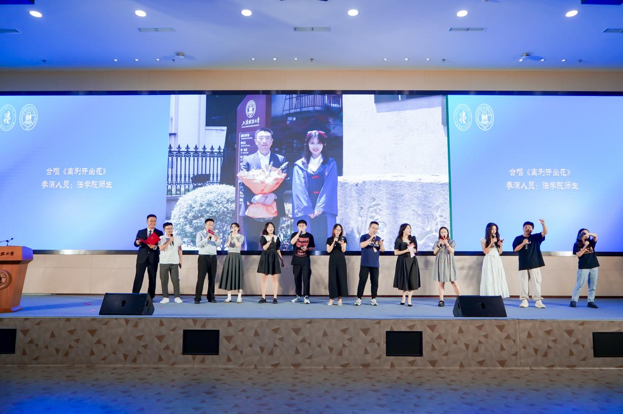 最后,由法学院教师代表与毕业生代表们带来合唱《离别开出花》,歌声伴随着回忆,更觉时光短暂、离别在即。毕业是学生生涯的结束,更是人生新阶段的起点。当离别开出花,伸出新长的枝芽,像冬去春又来,等待心雪融化。法学学子定会鼓起勇气,一往无前!