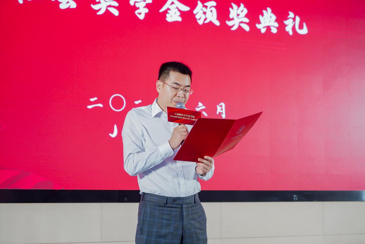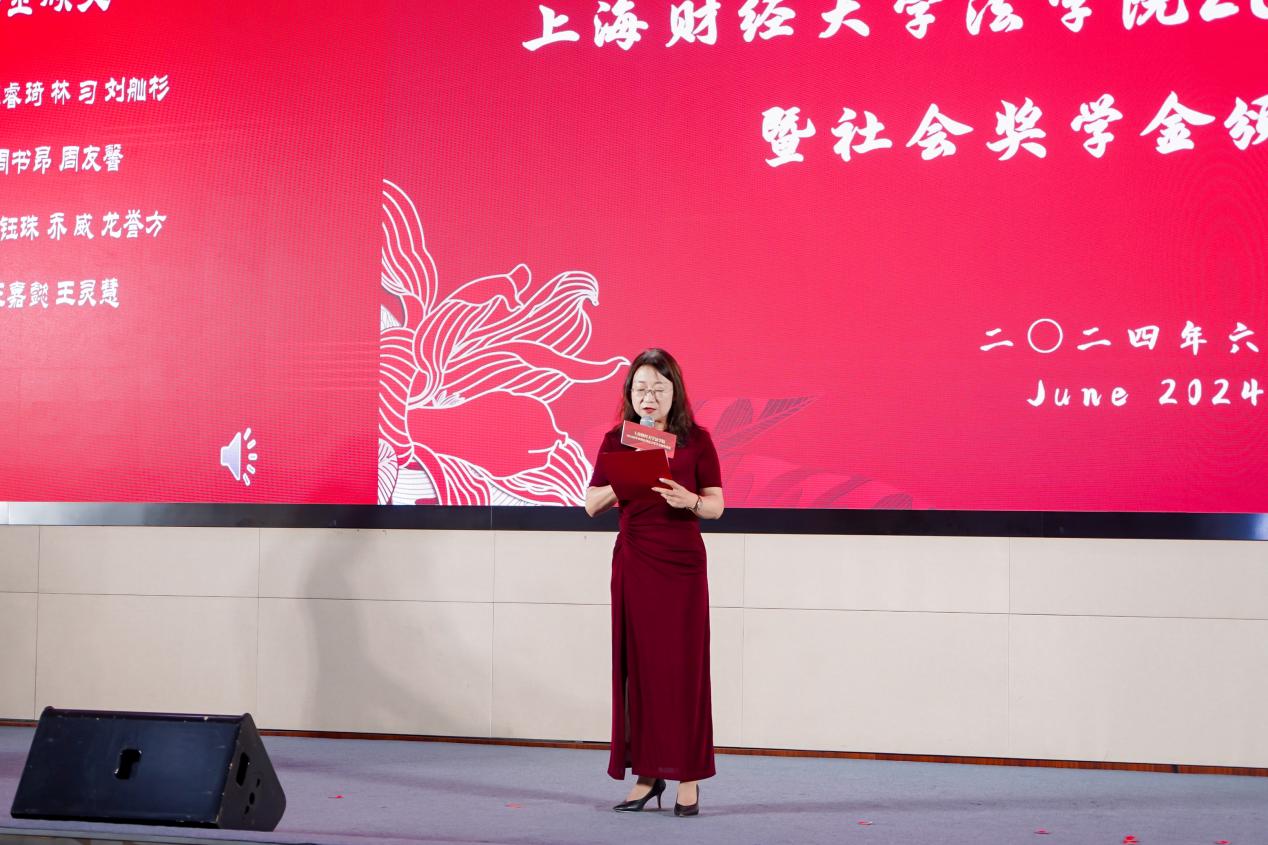 随后,吴老师向大家宣读了2024年社会奖学金获奖名单。2024年法学院共设各类社会奖学金、助学金10项,共计192人获奖。吴老师对设奖单位表达了感谢,对获奖同学表示了祝贺。