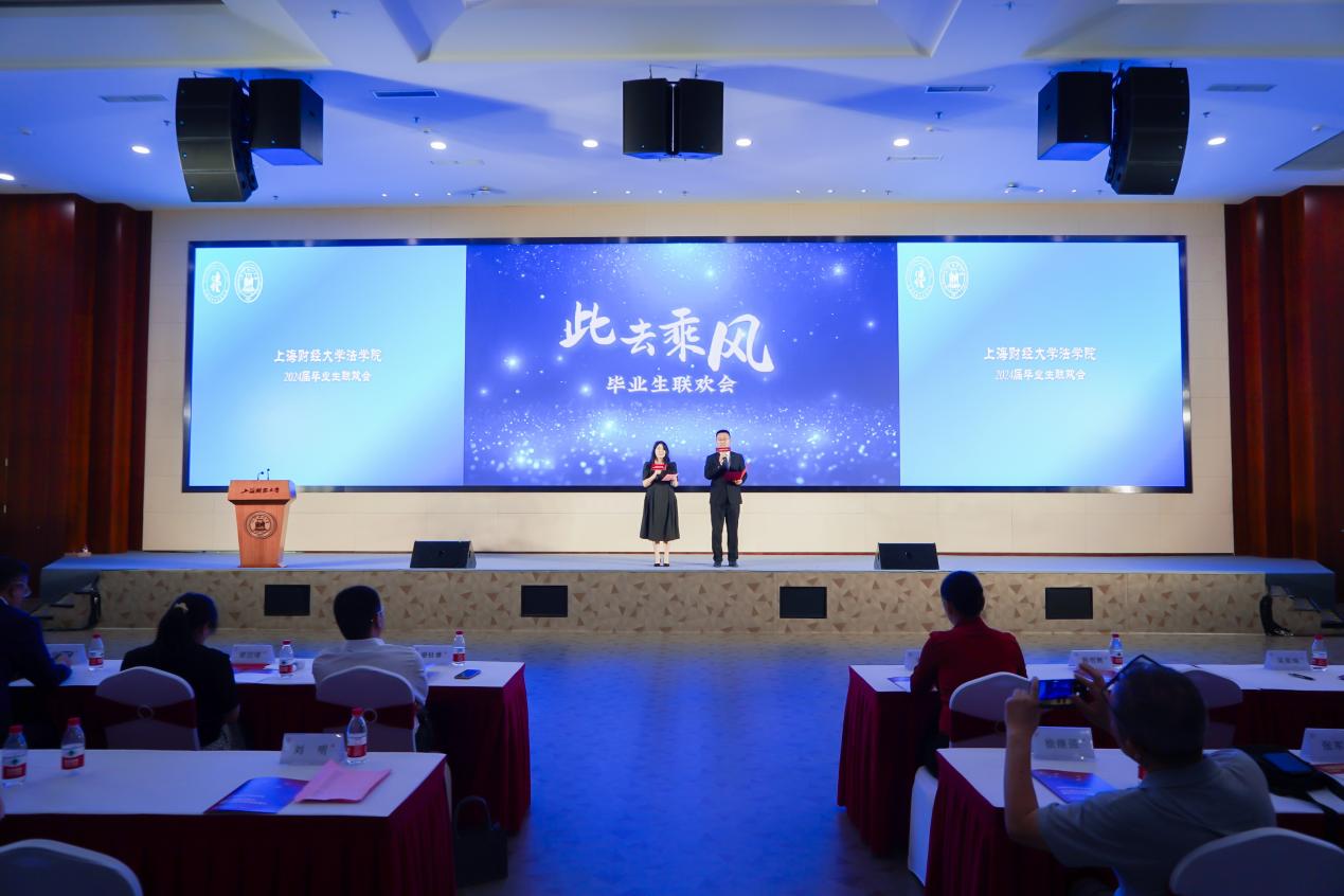 颁奖仪式结束后,法学院毕业生联欢会拉开序幕。2024届毕业生尚雪睿、周紫薇主持联欢会。
