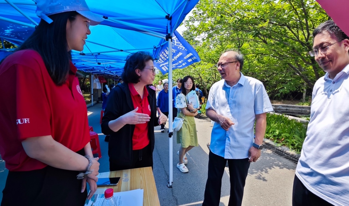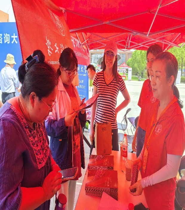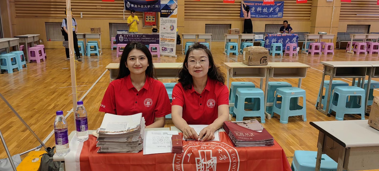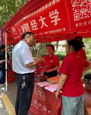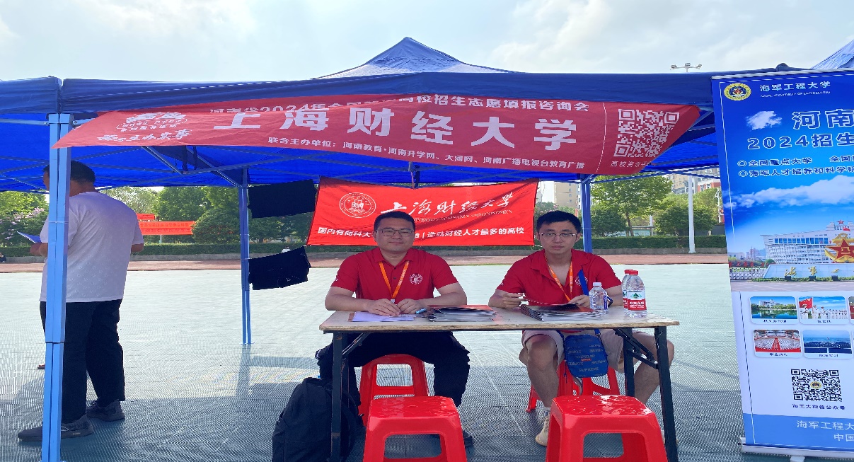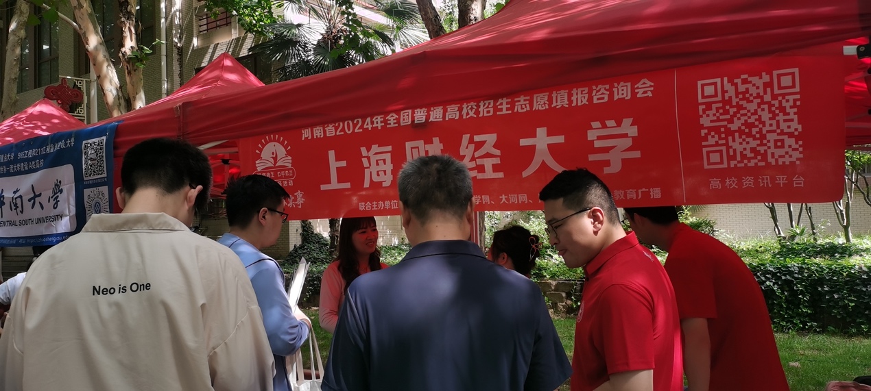 6月25日上午,陈芳老师、李德旺老师、刘孝阳同学及韩昕宇同学应邀参加由河南教育·河南升学网主办的河南省2024年全国普通高校招生志愿填报咨询会。本次咨询会主会场在郑州市第七高级中学,全国众多高校参加,面向河南全省的考生和家长。在活动现场,咨询我校招生专业设置、招生政策、历年投档分数等问题的家长和考生络绎不绝,招生组老师和志愿者为前来咨询的考生和家长们分发学校招生资料,并对相应问题给予了耐心的解答。在咨询会开展期间,陈芳老师还接受河南当地媒体直播的采访,通过直播的方式向大家介绍和宣传上海财经大学,欢迎广大考生填报。
