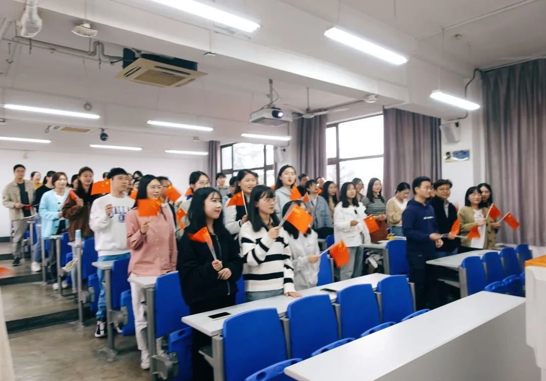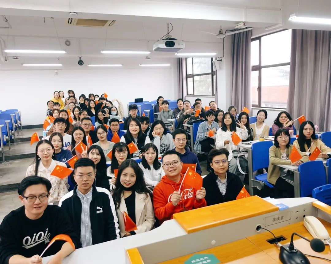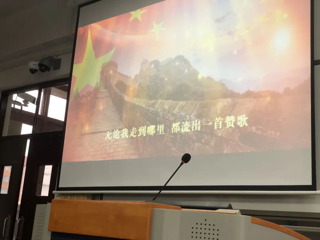 最后,同学们全体起立,挥舞着国旗,在党支书翁成立的领唱下共同歌唱祖国,表达了对祖国母亲的无限热爱,激发了同学们奋发向上,在中国共产党的领导下,为实现中华民族伟大复兴的中国梦而奋斗的无限热情!