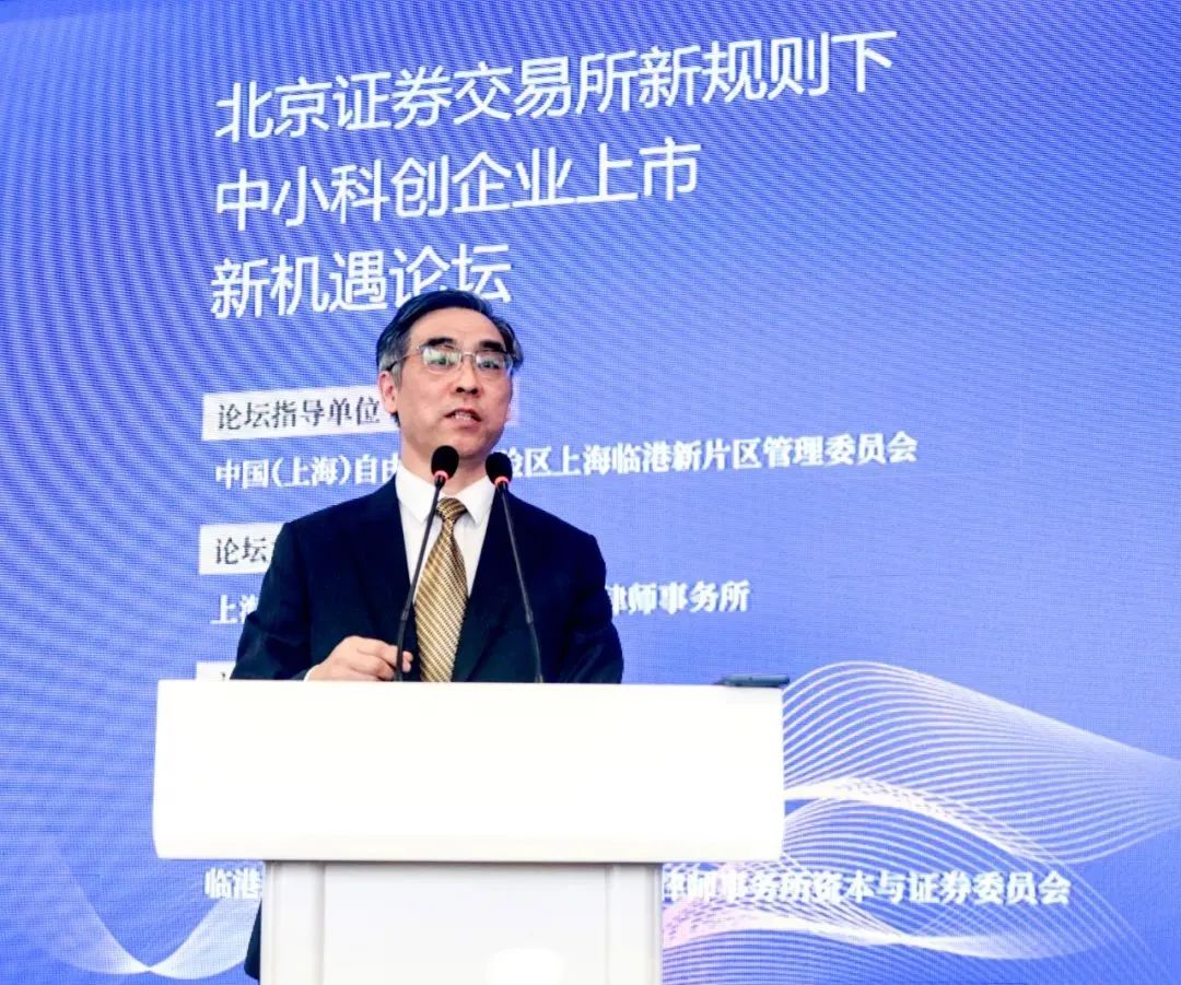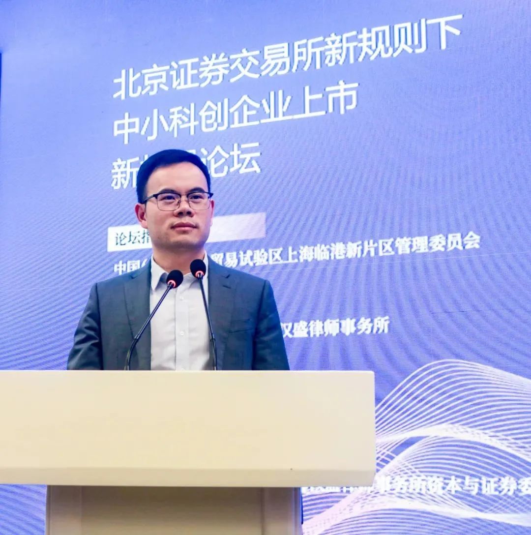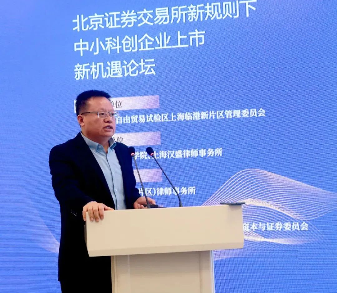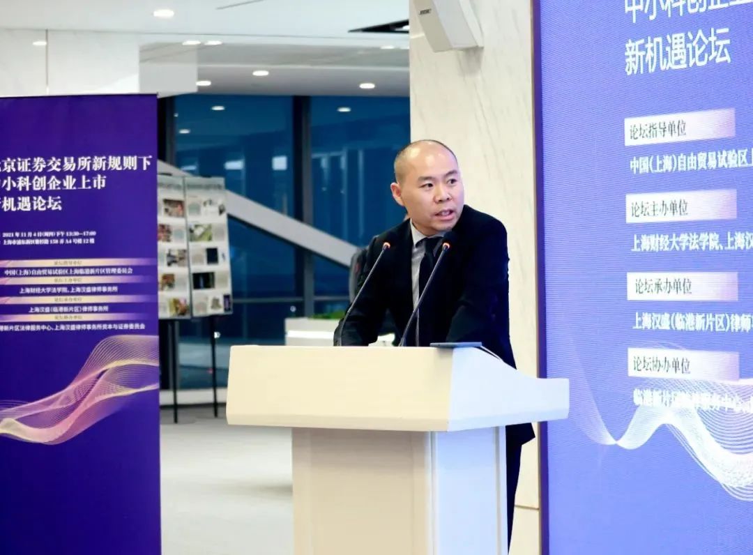 2021年11月4日下午,“北京证券交易所新规则下中小科创企业上市新机遇论坛”在临港新片区现代服务业开放区成功举办。本次活动由中国(上海)自由贸易试验区临港新片区管理委员会指导,beplay全站 、上海汉盛律师事务所主办,上海汉盛(临港新片区)律师事务所承办,临港新片区法律服务中心、上海汉盛律师事务所资本与证券委员会协办。来自临港新片区管委会、北京大学法学院、中央财经大学法学院、西北政法大学经济法学院、同济大学法学院、申港证券股份有限公司、信永中和会计师事务所、中小科创企业股东、董事、监事和高级管理人以及beplay全站 、上海汉盛律师事务所等上百位专家学者参加了此次论坛。