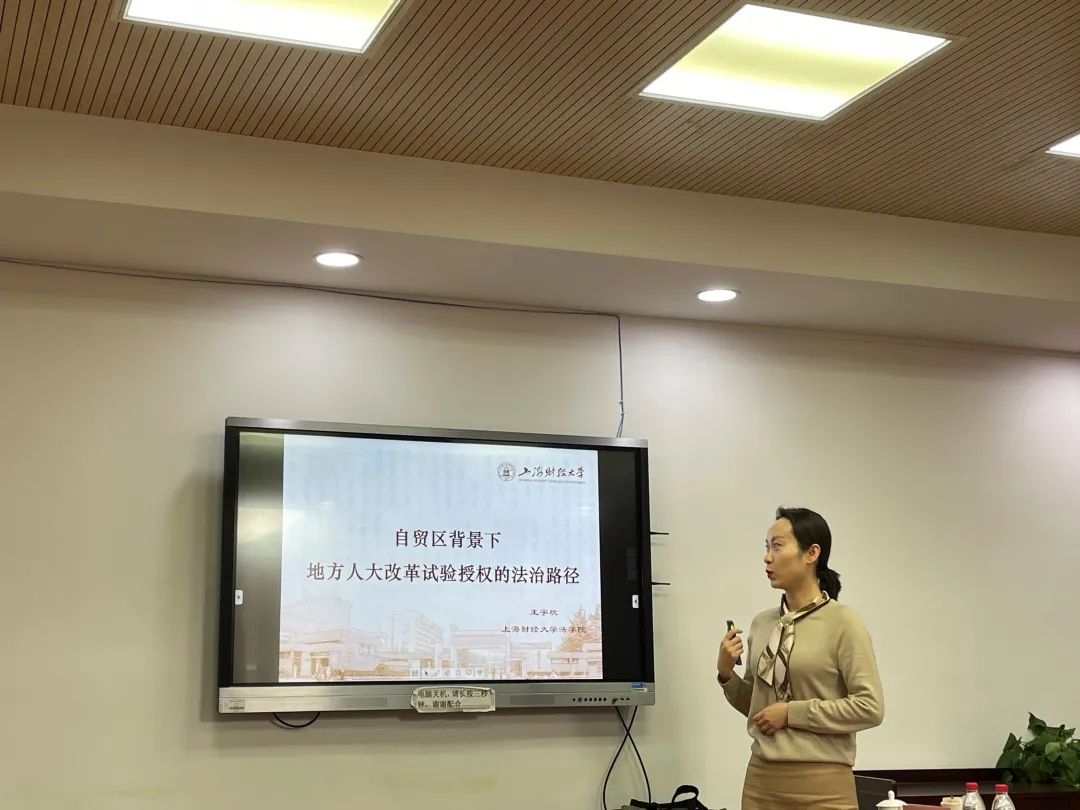 2021年11月9日下午3点,2021-2022学年第三期论文工作坊在法学院220会议室举行,beplay全站 王宇欢老师作了题为“自贸区背景下地方人大改革试验授权的法治路径”的报告,与大家展开精彩的交流与讨论。讲座由beplay全站 院长助理袁波老师主持,华东师范大学法学院副教授孟凡壮,上海大学港澳台法研究中心特聘研究员王涛老师参与评议。与此同时,本次论文工作坊还邀请到beplay全站 徐继强教授、徐键教授、曾坚副教授、于洋老师参与研讨。会议伊始,主持人袁波老师向与会老师和同学们介绍了主讲人、评议人以及本次学术报告的基本情况。