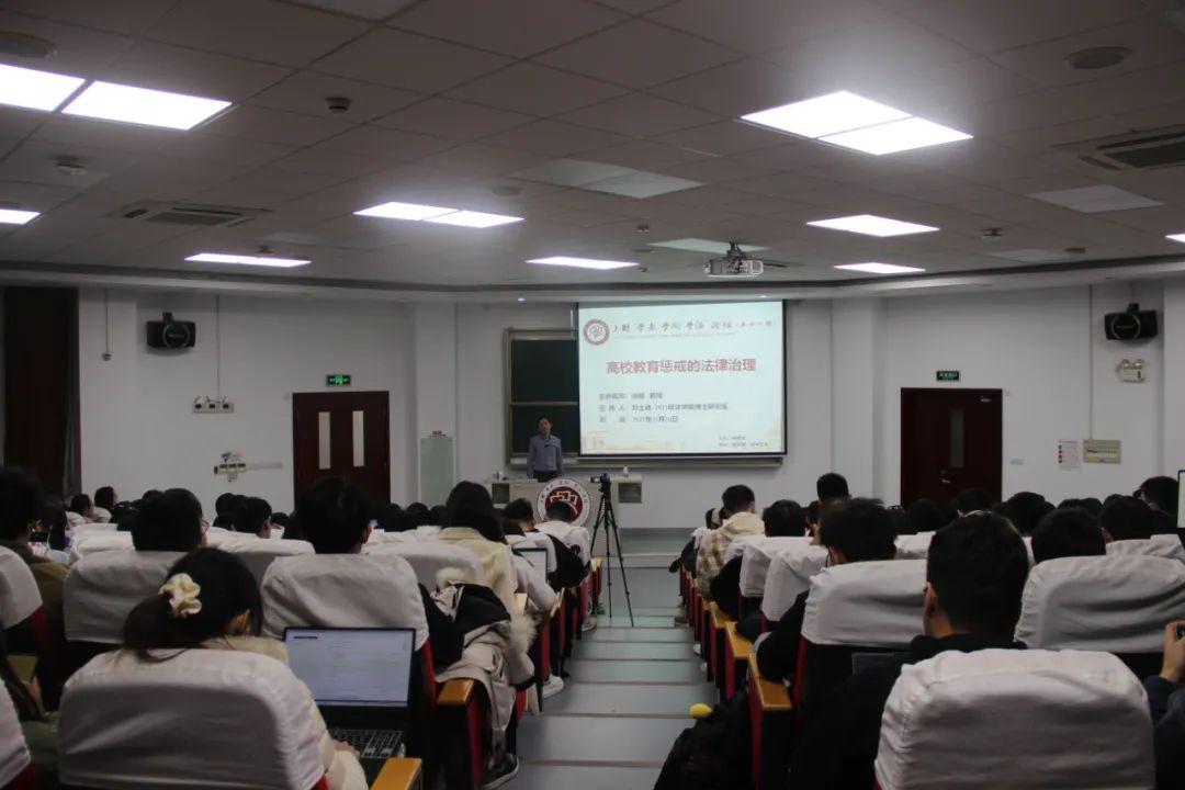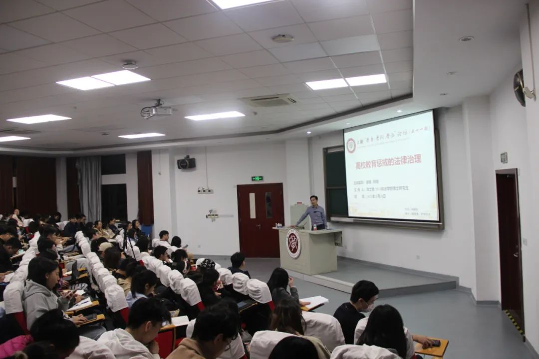 11月10日晚,上财“学者·学问·学派”论坛本学期第五讲(总第五十一期)于武东路阶梯教室如期举行。此次论坛由我校法学院徐键教授主讲。徐键教授以“高校教育惩戒的法律治理”为主题,通过未成年的教育惩戒功能引入,以对学生进行惩戒的考量因素、高校教育的惩戒界限、惩戒教育实施中的问题与对高校教育惩戒的反思为脉络,深入浅出地对高校教育惩戒的法律治理进行了剖析。现场座无虚席,近两百师生共同聆听了本次论坛。