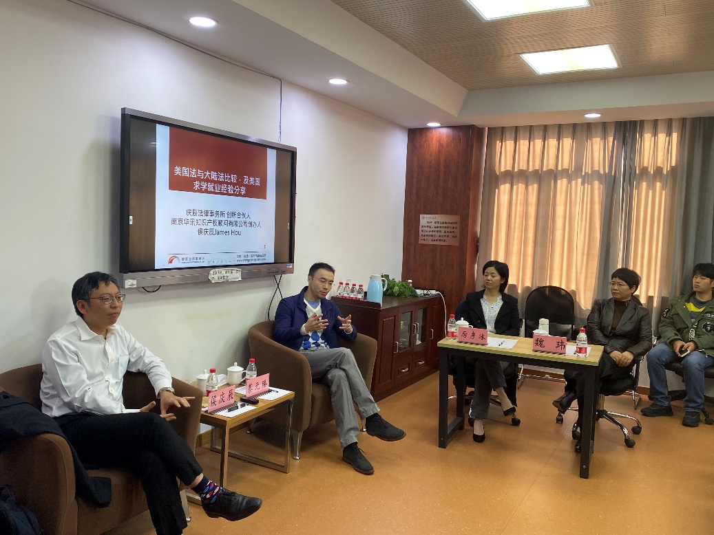 2021年11月18日中午,讲座《美国法与大陆法系的比较及美国求学就业经验分享》在法学院220会议室举行。本次讲座由庆辰法律事务所创所合伙人、南京华讯知识产权顾问有限公司创办人侯庆辰博士主讲,beplay全站 蔡元臻老师主持,我院魏玮老师和上海国际组织与全球治理研究院助理研究员厉彦冰老师评议。