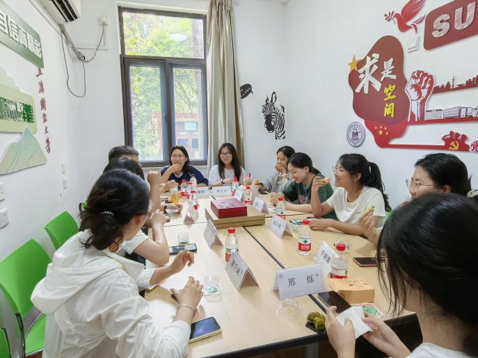 法学院党委副书记齐宁、兼职班主任石佳宇带着月饼走进国定路北四宿舍楼探访2024级本科新生,十余位师生就入学后的近况和问题开展了一场热烈而温馨的座谈会。