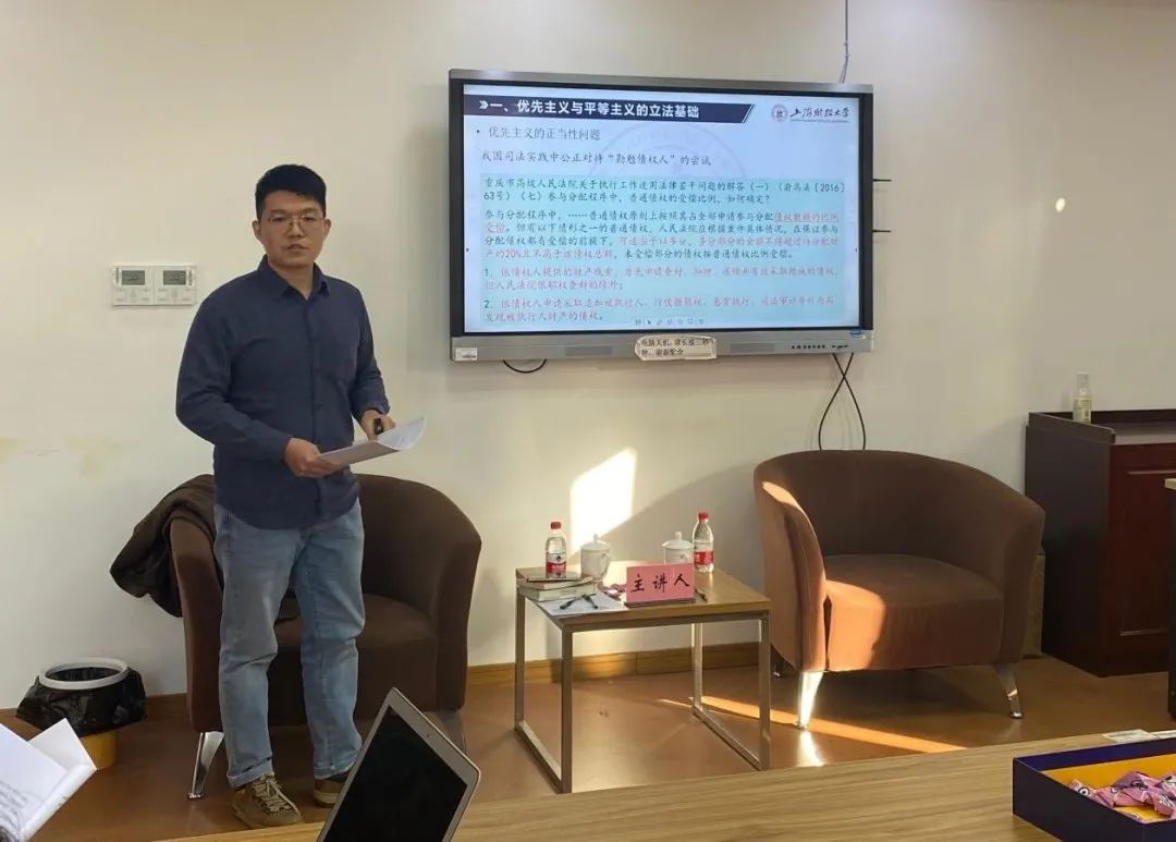 随后,郝老师也分享了他的观点,提出优先主义与平等主义已有学者进行过研究,若想有所突破难度有点大。郝老师对第二部分“查封债权人优先受偿的实体法地位”分享了自己的观点和看法。同时,郝老师与朱老师交换了承认查封债权人的优先受偿权利在破产程序中的益处,即该做法贯彻了私法自治,让债权人就债权的行使始终处于一个不断竞争的地位。
