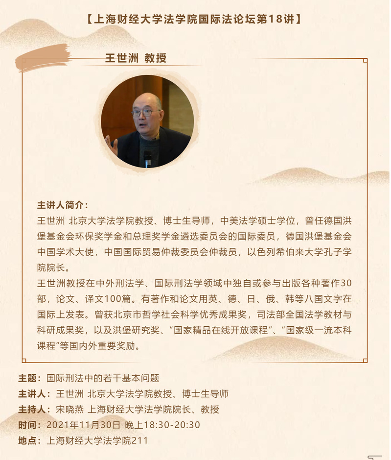 北京大学法学院王世洲教授《国际刑法中的若干基本问题》