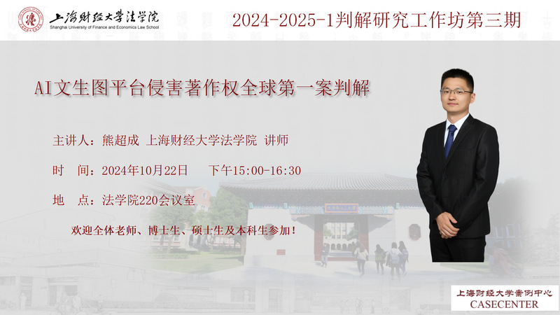 讲座预告 | 2024-2025-1判解研究工作坊第三期 AI图文生成侵害著作权全球第一案判解