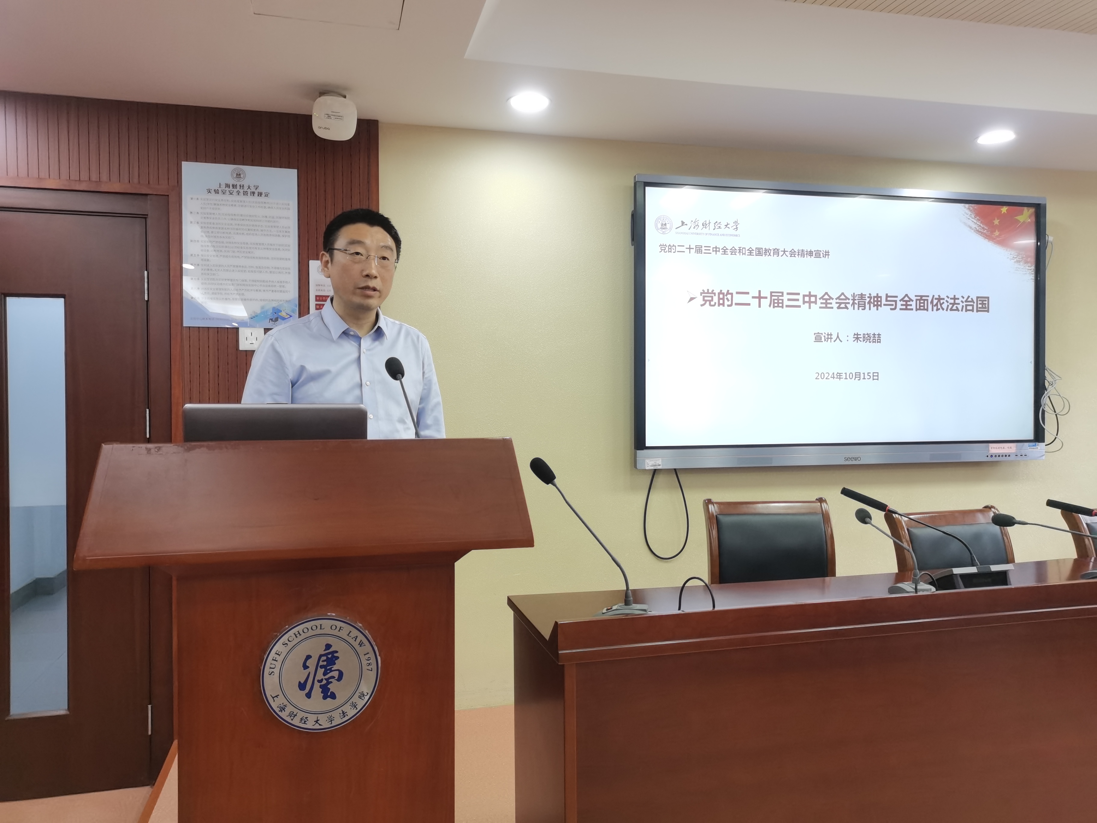 为深入学习和贯彻党的二十届三中全会精神和全国教育大会精神,2024年10月15日,beplay全站 在116会议室召开学习会。法学院副院长朱晓喆教授以“党的二十届三中全会精神与全面依法治国”为主题进行宣讲。