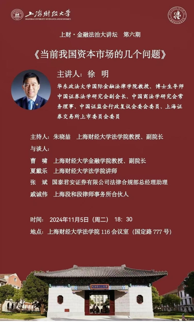 讲座预告|上财·金融法治大讲坛第六期:当前我国资本市场的几个问题