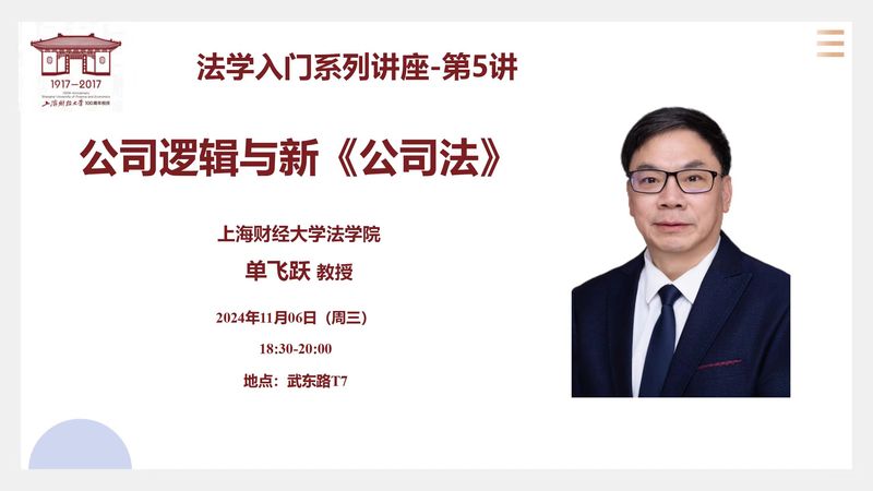 讲座预告|法学入门系列讲座-第5讲:公司逻辑与新《公司法》