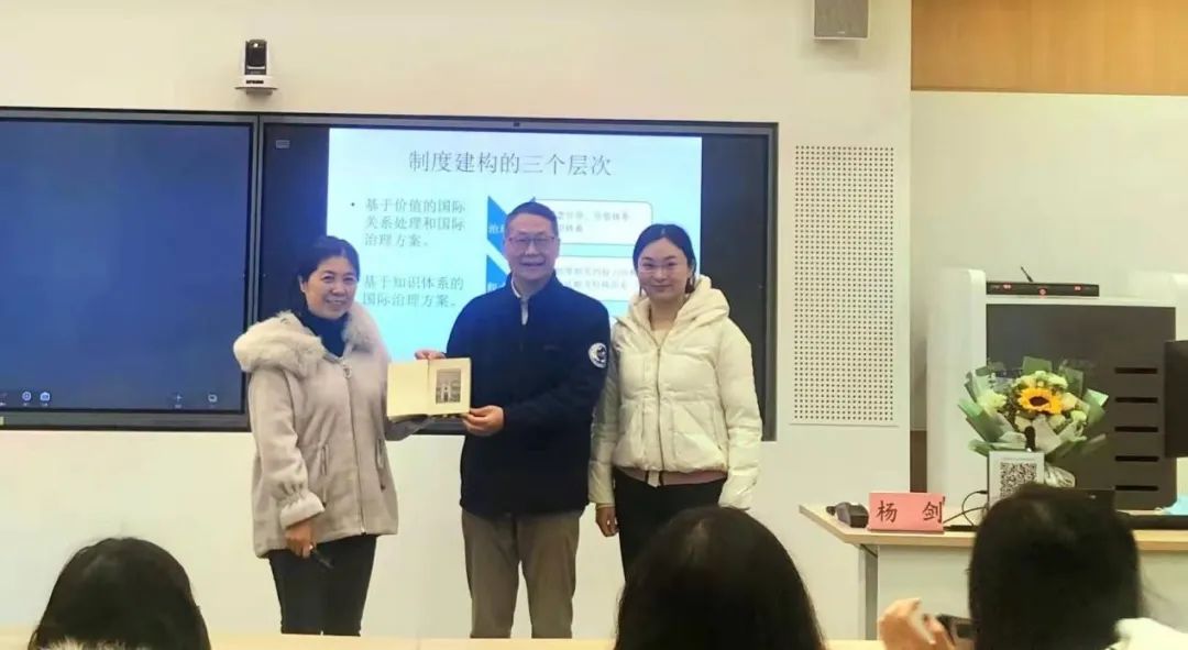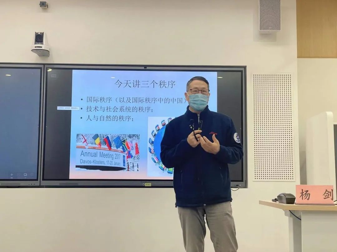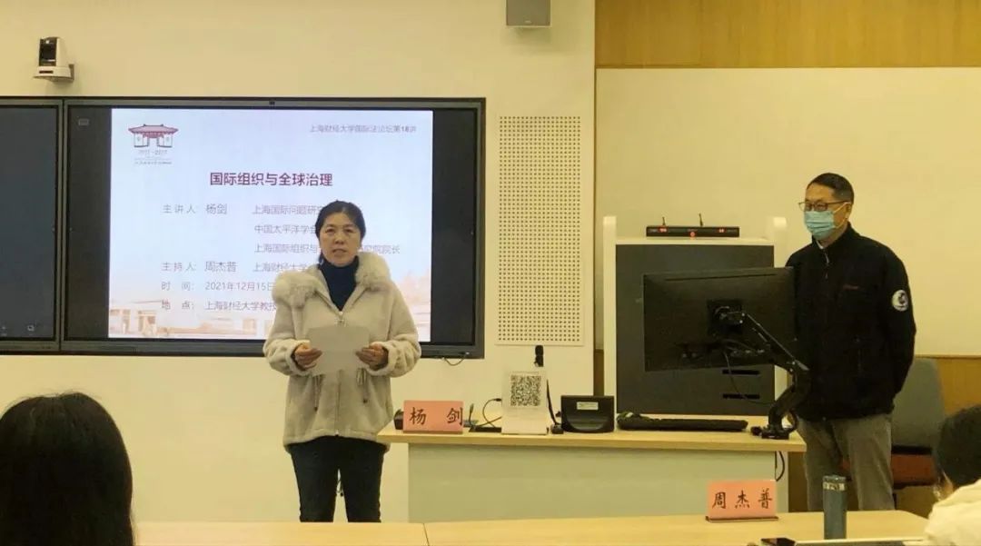 2021年12月15日上午,上海国际问题研究院副院长、中国太平洋学会副会长、上海国际组织与全球治理研究院院长杨剑应邀走进上海财经大学教技楼317智慧教室的《国际法》课堂,与beplay全站 周杰普教授双师同堂,为同学们带来主题为“世界秩序,全球治理,国际制度以及中国的全球治理观”的讲座。国际法教研室冯静茹老师和法学院部分学生参加。讲座伊始,周杰普教授隆重介绍了杨剑院长,并对其莅临讲授表示热烈的欢迎。