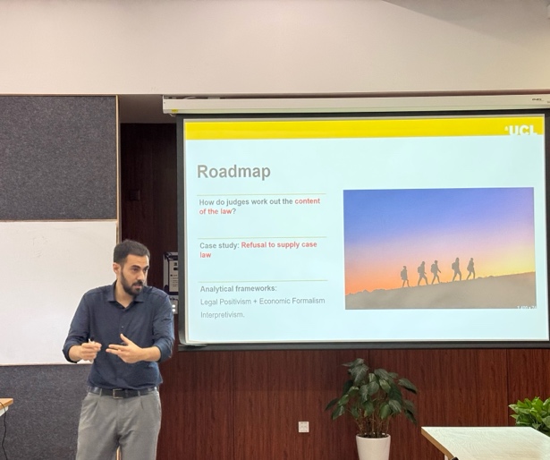 2025年5月19日上午,上海财经大学涉外法治论坛—上海高校涉外法治人才教育培养基地系列讲座第三讲在科研实验大楼B116举办。伦敦大学学院竞争法讲师Stavros Makris主讲“从Bronner案到Android Auto案:竞争理论解释性研究(From Bronner to Android Auto - An Interpretivist Theory of Competition)”,beplay全站 朱颖颖老师担任主持人,上海财经大学商学院、反垄断与竞争经济学研究中心主任居恒副教授、beplay全站 吴清卿老师参加与谈。讲座吸引了众多师生参与,现场学术氛围浓厚。