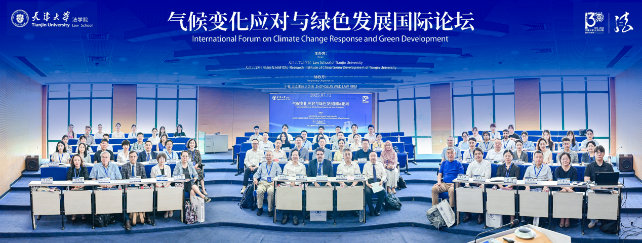 2025年7月12日,由天津大学法学院、天津大学中国绿色发展研究院主办,中伦文德律师事务所协办的“气候变化应对与绿色发展国际论坛”在天津大学卫津路校区举行。本次论坛邀请到多位国内外绿色法治领域的专家学者,围绕环境政策、立法与司法等层面的气候变化应对机制,聚焦绿色规则制定与制度构建的前沿议题展开多维对话。
