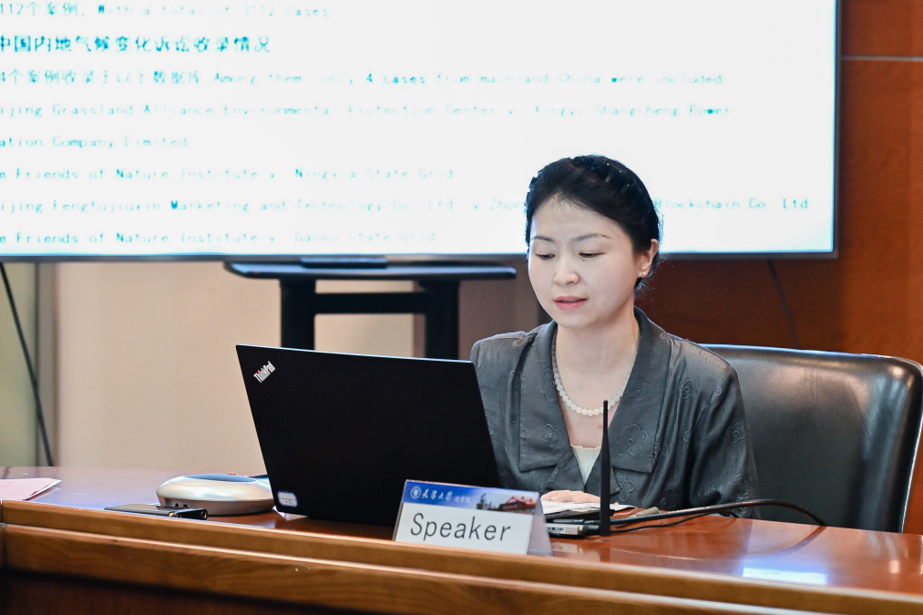 法学院博士生导师胡苑教授进行了题为Exploring China's Climate Change Litigation Mechanisms under Localized Structures的发言。她指出类似气候变化这类极其复杂的领域,其制度往往不是自发生成,而是带有人类社会顶层制度设计思路在内,但设计出来的制度又会面临制度失灵的悖论。当下我国气候变化诉讼的实践展开与域外呈现出不同的特点,这些特点都与本国的产业结构和制度推进模式息息相关。气候变化诉讼在应对气候变化问题上具有灵活性,它不仅是气候治理制度体系的有机组成部分,还承担着推动更具实效性的制度生成的功能,能够在一定程度上化解部分制度失灵问题。