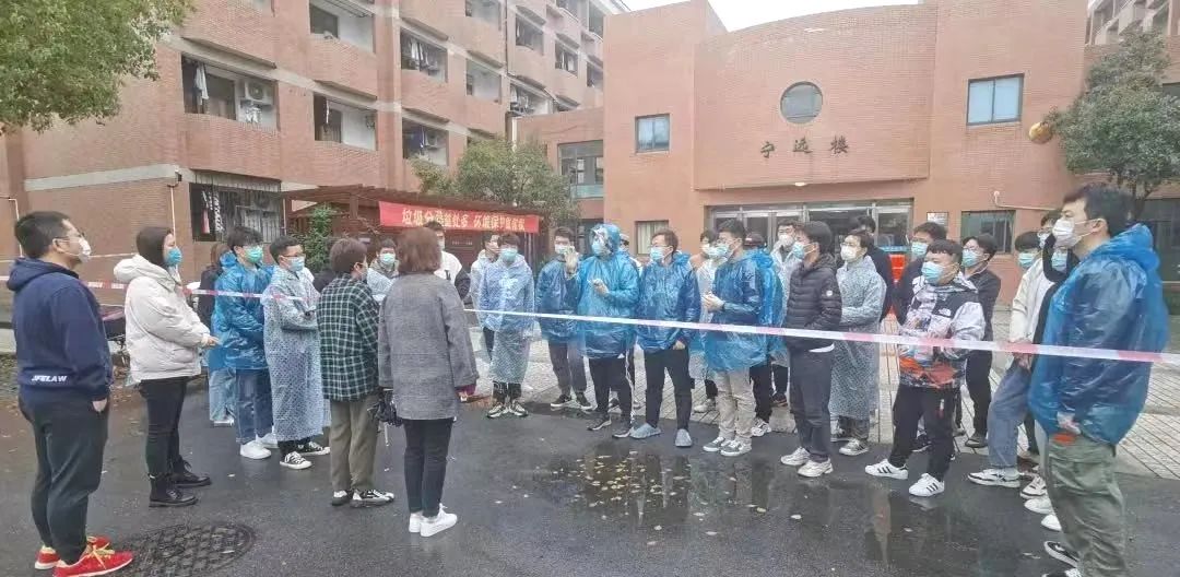 18日和19日的两次核酸检测,全楼都在90分钟内顺利完成。特别是19日,虽然气温骤降,大雨骤至,但在志愿者们的精心协调和全楼同学的积极配合下,全过程安静和谐、井然有序。