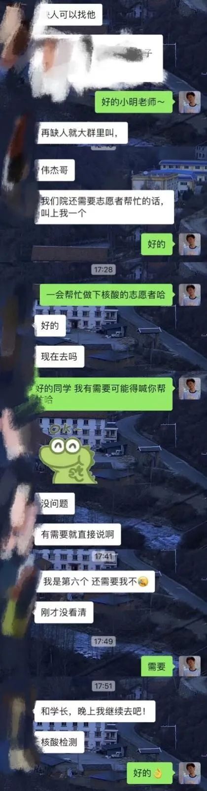 “各位志愿者同学,请务必确定每位同学都下来做核酸,一个不能少”,现场组织协调的老师殷殷叮咛道。