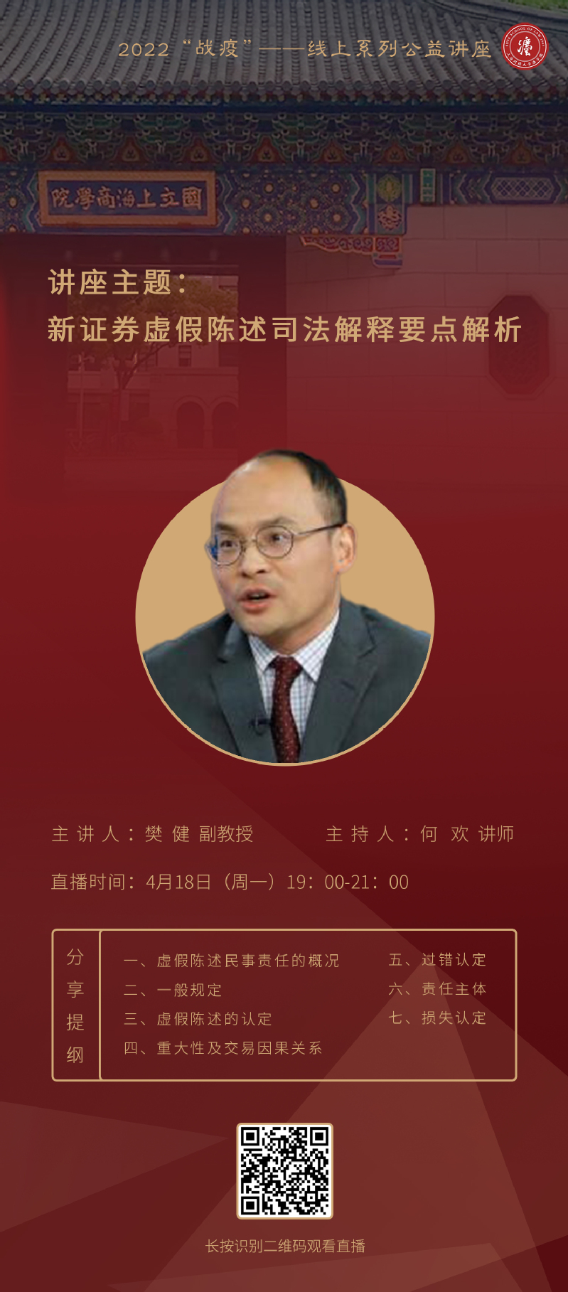 2022“战疫”系列第七讲:樊健副教授《新证券虚假陈述司法解释要点解析》