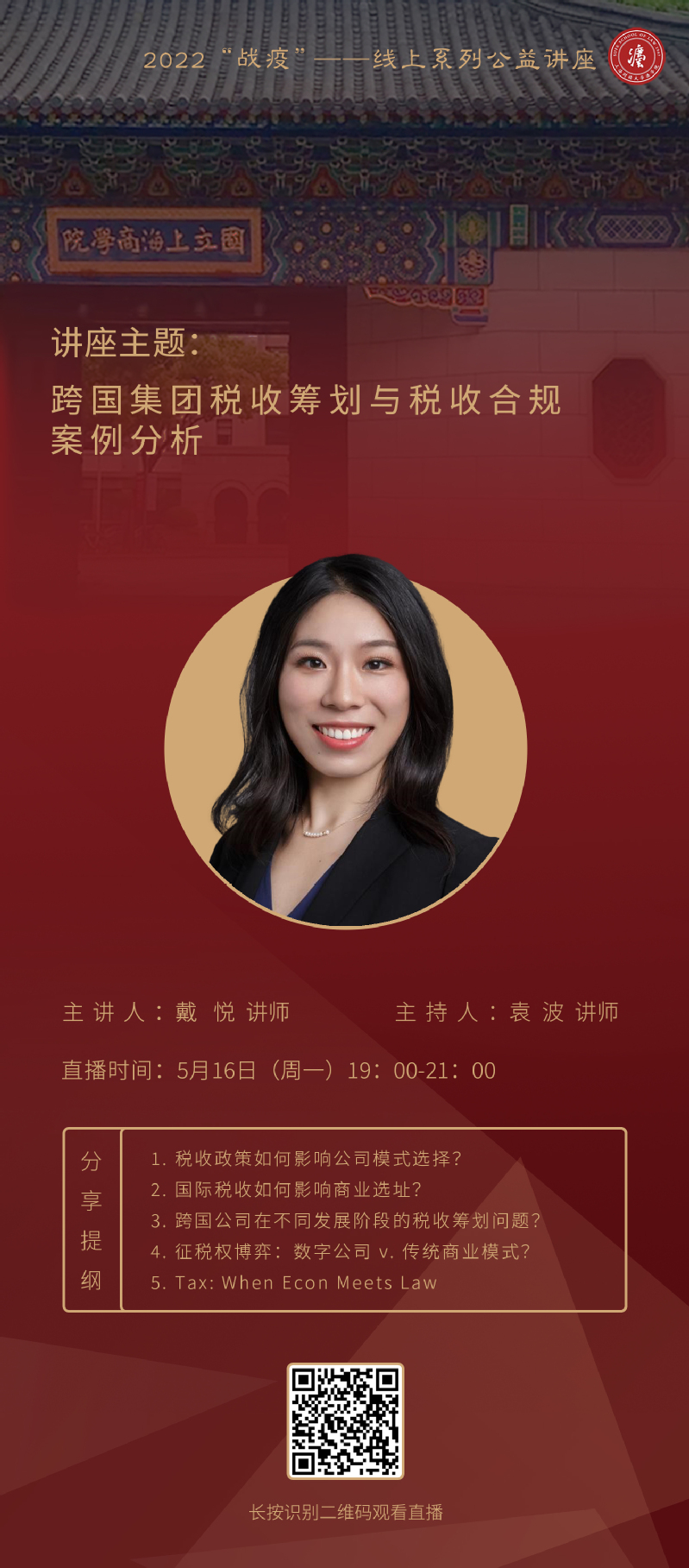 2022“战疫”系列第十三讲:戴悦讲师《跨国集团税收筹划与税收合规案例分析》 beplay全站 2022-05-15 10:49