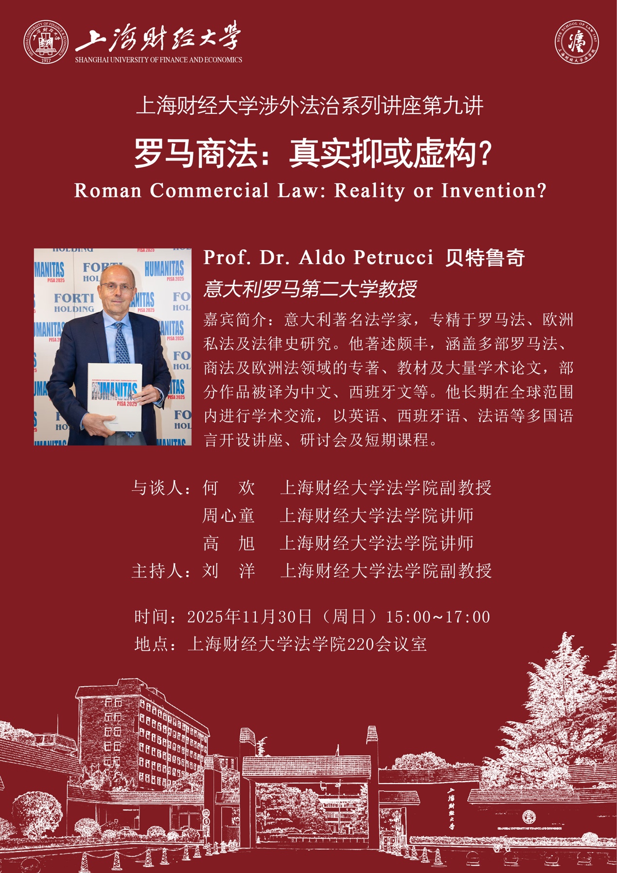 讲座预告|上海财经大学涉外法治系列讲座第九讲:罗马商法:真实抑或虚构?