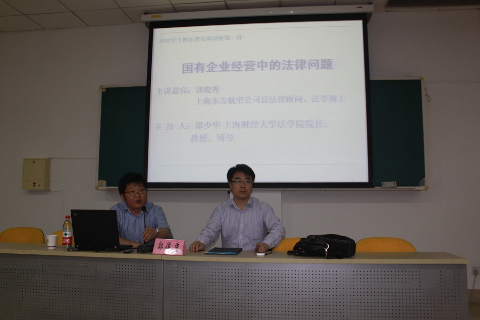 2012年5月31日,应beplay全站 邀请,上海东方航空公司总法律顾问、法学博士郭俊秀来我校做了题为《国有企业经营中的法律问题》的专题讲座。讲座由beplay全站 院长郑少华教授主持。